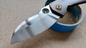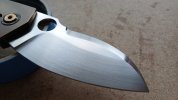 New / never used / first owner / my specifications built by Jens : patina'd copper show scale, bronze anodized lock side, Mike Norris damascus clip + pivot collars + backspacer.