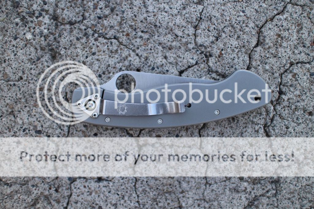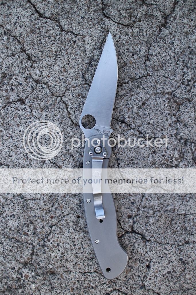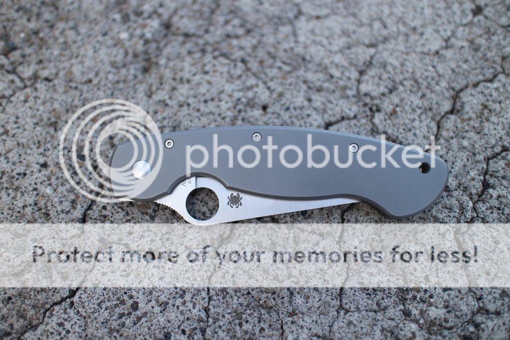 Hi folks, I am getting rid of a few of my dust gatherers. This is a ti Military that I bought a few years ago and never really carried. I used it for the first month or so and sharpened it a few times but it has been sitting in a Spyderpack since then. The knife has rock solid lockup at less than 50%, excellent centering and is in almost new condition. Sorry, but I do not still have the box. Price is $185 paypal. First I'll take it gets it.