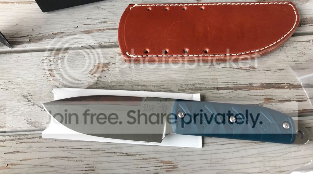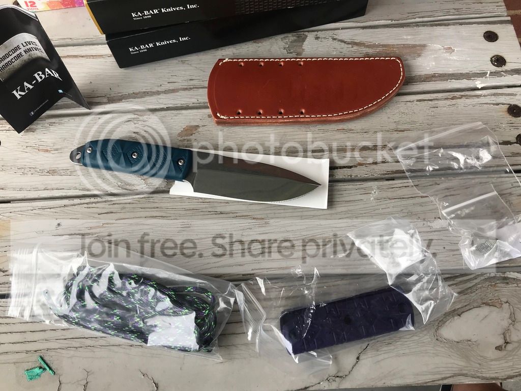 This is a collaboration between Mike Snody and Ka-Bar. It’s a big ole hunk of S35VN steel. The package includes extra scales, leather sheath, paracord and a sweet pewter Snody bead.