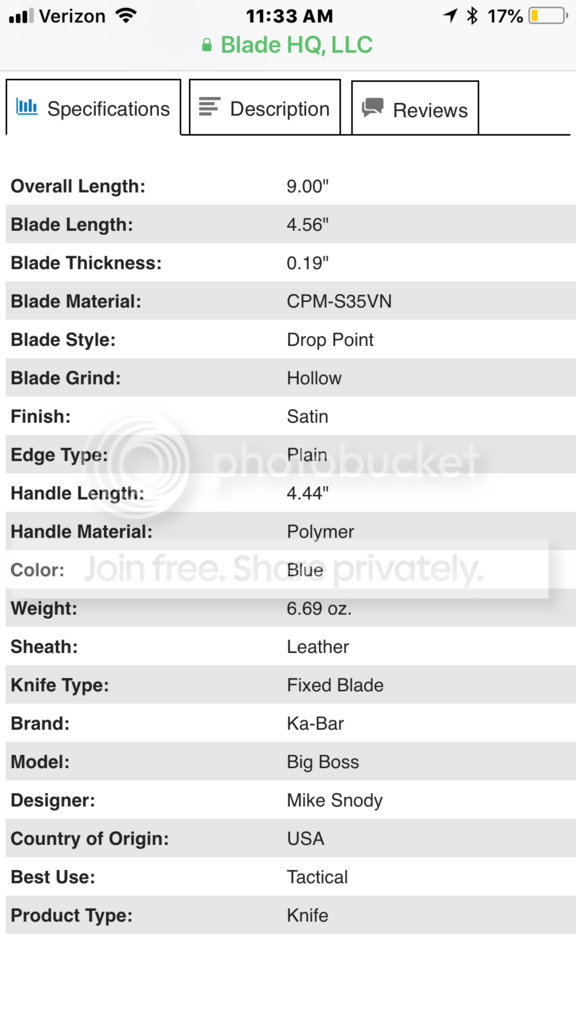 The Big Boss fixed blade is a Mike Snody designed knife from KA-BAR and is made in the USA from premium S35VN steel. The tang extends past the FRN scales to reveal a lanyard hole. Comes with interchangeable blue "Reptile" and purple "Dolla Holla" scales. The Boss includes a semi-custom JRE leather sheath.