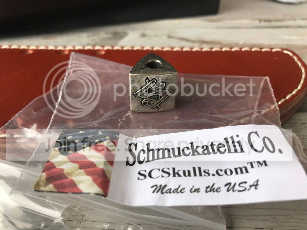 Also included with the Big Boss knife are 8' of coordinated 550 cord and an 8" precut lanyard to affix the Schmuckatelli custom-designed pewter bead with the Snody "S" logo. Create a one-of-a-kind look with these coordinating elements.