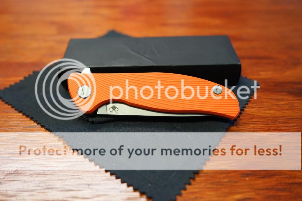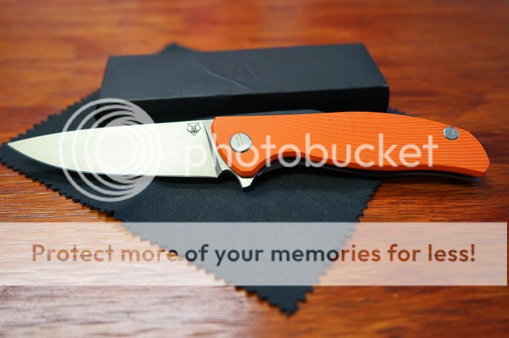 Up for sale is my Shirogorov Hati, S30V blades steel ,Orange G10 scale. This one runs on washers but is extremely smooth.Only selling because I have 4 and this one doesn't see any pocket time anymore. Has been sharpened once and has a polished wicked edge. Extremely sharp. First I'll take it posted here will get it followed up with PM or email( this is listed on multiple website, so timestamp will get it.). Price is firm & not interested in any trades.$SOLD + 3.5% PayPal goods/services. I will ship priority mail to CONUS only.