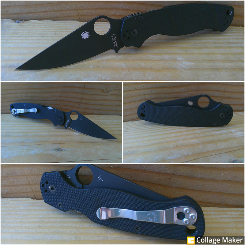 --Spyderco Paramilitary 2 Black G10 Scales with Black Coated S30V Blade. Excellent condition factory Edge.