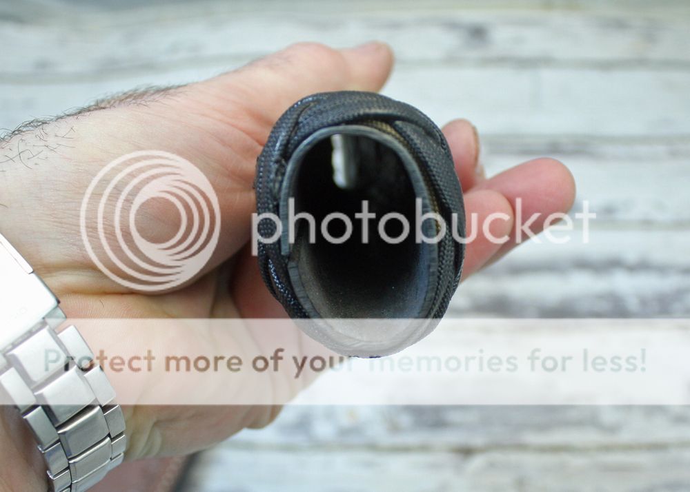 The handle is socket handle that is wrapped in paracord and soaked in epoxy. I also tied turks head knots on the front and back of the handle. This provides a durable, comfortable grip.
