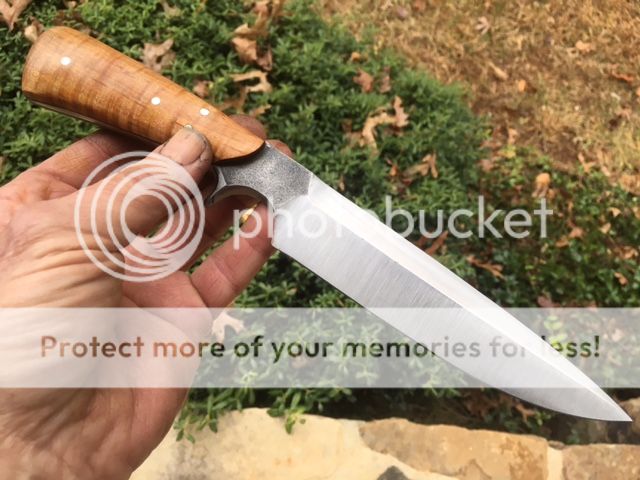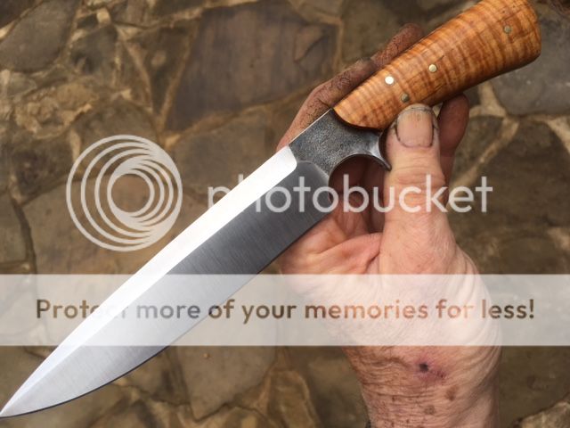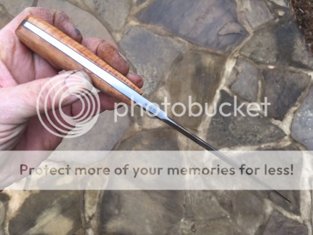 Heat treated in my Paragon furnace to Rc 58-60 with three normalizing and two tempering cycle with a fine grain throughout the blade