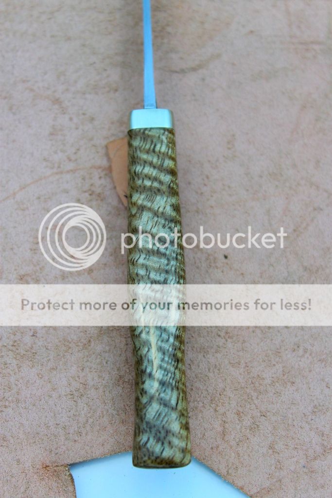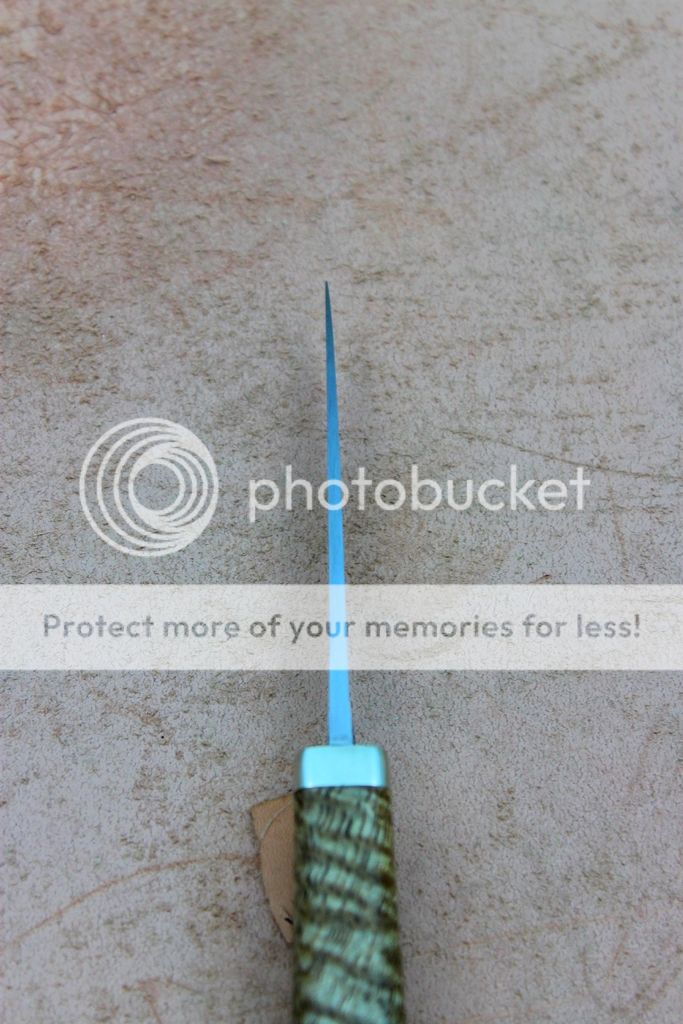 I am offering up my very first forged blade. This is kind of a special one for me, but I hope to forge many more blades in the future. I forged this from 1/2" W1 drill rod, with 1% carbon. HT done by me in my evenheat kiln, triple normalized for grain refinement.
