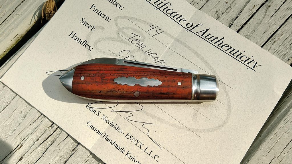 Well, I went a little nuts earlier this year. Got myself a whole slew of one handed openers. Hinderer, Chris Reeve, Benchmade, Spyderco. I immediately turned around and released some of them back into the wild, some I kept. I also got a few fixed blades and one custom barlow. I got a few from Scott Gossman, modified short wide Polaris, a bushcrafty knife, a PSK Jr. neck knife, and a modded wharncliff that he made for himself but sold to me. I also got a similar modified neck knife from Joshua Fightmaster. The custom barlow is CPM154 from Manuel Saldana.