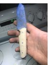 Hello forum members. First, let me say thanks to anyone who has contributed to these pages. I have absorbed a huge amount of information here and I hope I will gain the experience to help other beginners. That being said, I am a beginner myself. I have practiced some grinding and drilling on mild steel. I have a 1x30 with the Norton belts. No problem with the grinding. I also have a 5 speed bench top drill press. Again, no problem with the soft steel. Start with a punch than drill with a center drill. Step up to a 9/64 bit followed by a #24. Then I ream with a 5/32 carbide reamer. Perfect fit for my 5/32 SS pin stock. Practice went well and I moved on to a 5/32” piece of 01 ground flat stock. All good, nice shape, feels great in hand. Sharp alignment of plunge lines. Finished it down to 120 grit and anxiously did a HT in a forced air hardwood charcoal setup. Magnet test. Go a little past then quench in fresh canola oil. Passed file test and on to temper. Two 2 hours cycles in oven at 425 with cool in between. Everything looks and feels great. Feeling proud. Then I go to drill the pin holes. Darn it! Broke two center drills and barely made a divot. Tried carbid bits, diamond bits. No go. So, now I realize I probably should have drilled the holes before HT. So, here lies my question. I was planning on annealing the blade again by bringing just to magnetism loss and then turning off the air and letting it cool in the coals. Then I was going to drill the holes with the #24 and re-HT and temper. Once done, I plan on reaming with the 5/32 for sung pin fit. Will that work or should I ream before HT. I am worried the holes will change. Any advice, criticism or tasteless jokes will be appreciated.