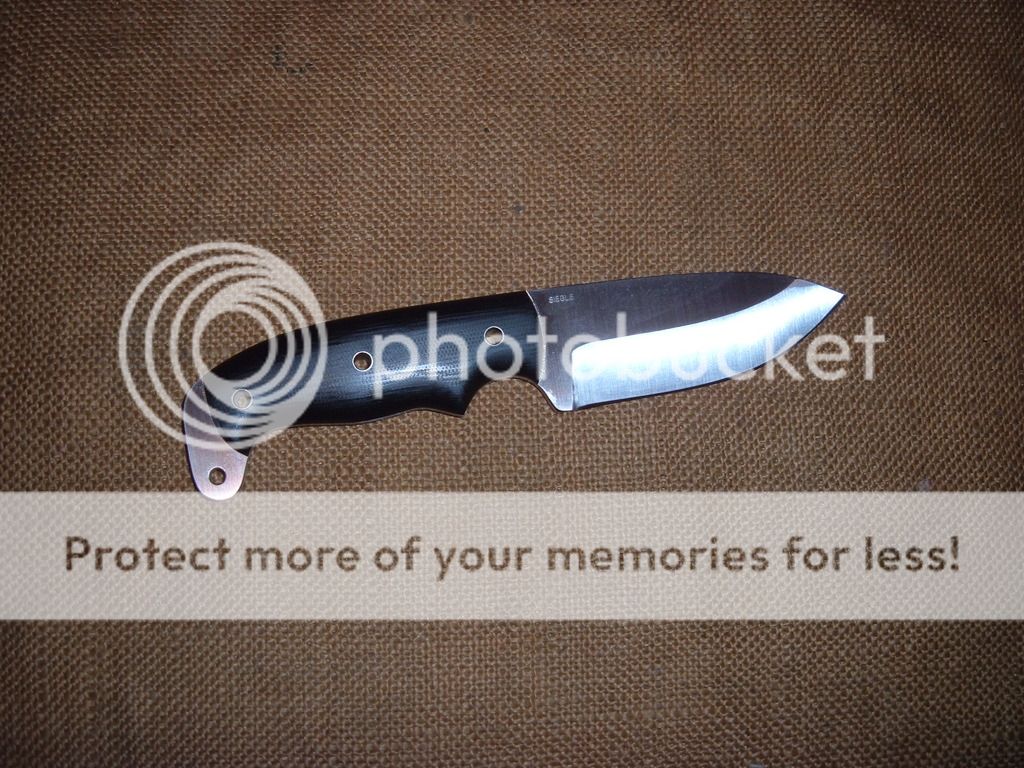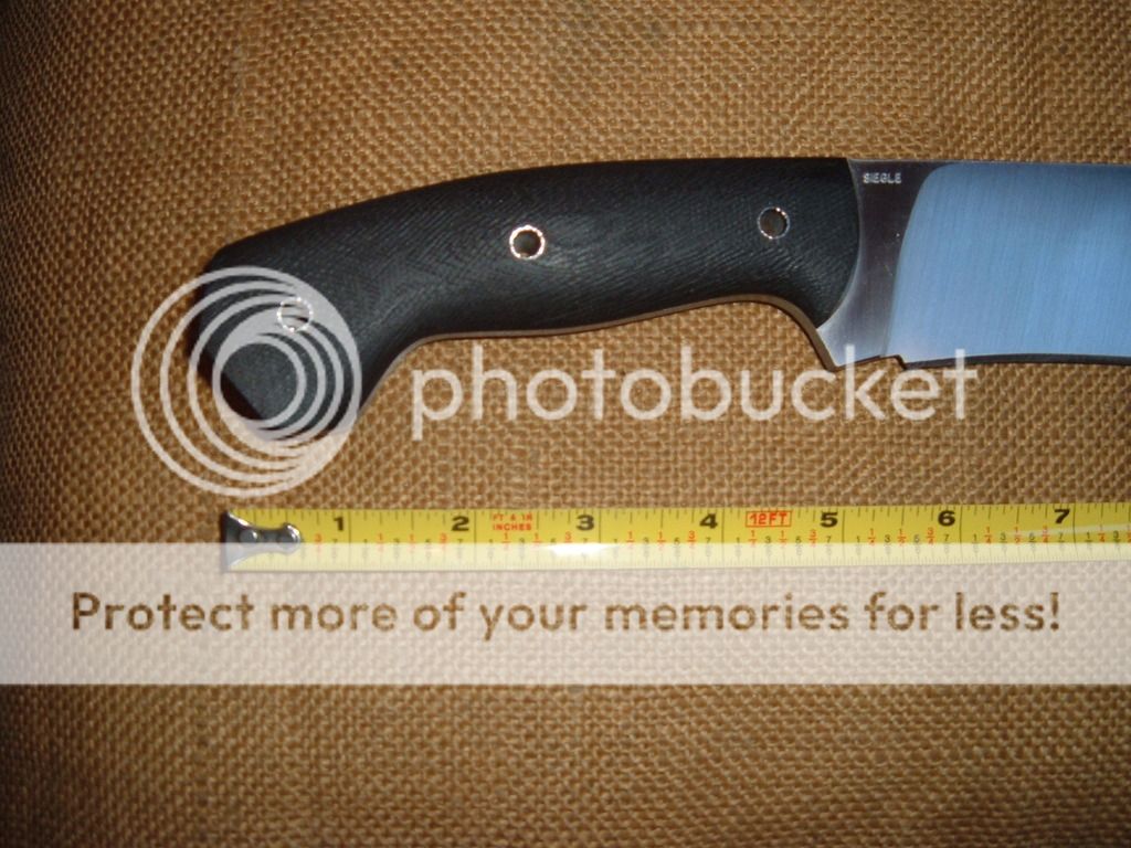 4in SAR in black G10. Blade is .200 5160 deferentially hardened. Aprox 8 3/4in overall with a 4 1/8in blade tip to handle.Comes with a black Kydex sheath set up for a large Tek Lok(not included). Price is $275 shipped in the US.