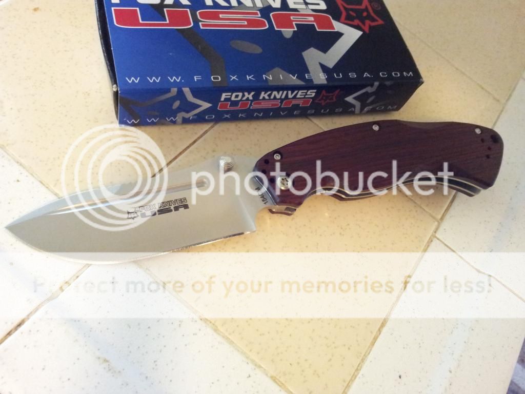 Fox Olympian with rich Colobolo wood scales. One of the smoothest folders I`ve experianced. Perfect centering and solid lock up. Made in USA with 154CM steel....comes brand new in box......$105 SHIPPED