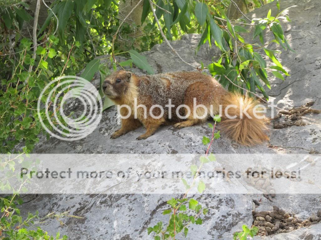 A week from today I start my long backpacking trip for the year, and I needed to get in another conditioning hike. Since I had not been to Franklin Lake since 2011, I decided to do a dayhike to get there. The first thing that you see when you get out of your car at the trailhead after driving the Mineral King Road (the last 25 miles are less than two lanes wide and gain 7000' over 698 officially counted curves) is one of the local denizens. Mineral King has the highest marmot population of any place I have seen in the sierras, they are thick there. And they like to chew on belts and hoses on parked cars, too.