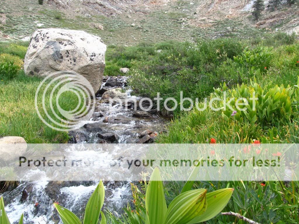 The first traditional snack break location is the crossing of Franklin Creek, where it enters Mineral King Valley proper