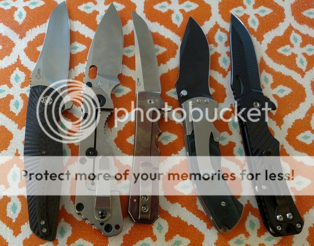 HI, Here are a few I am looking to trade. I am interested in trading for nice midtech or custom all ti frame locks, used is fine. PM is the best way to reach me, if you can't PM, post your email address in the thread and I will contact you.