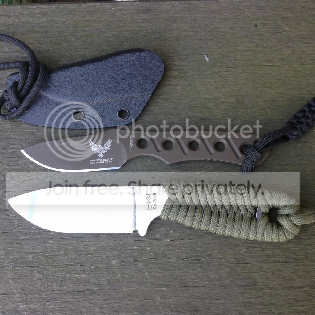 I have had a neck knife by Jeff Freeman for about 6 months now. It is in S35 steel and I like it a lot. I just put it in my pocket rather than carry it around my neck. I did add a IWB strap to try it on my belt but now prefer to carry it in my pocket.