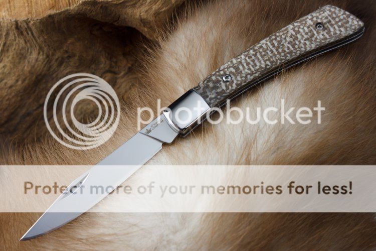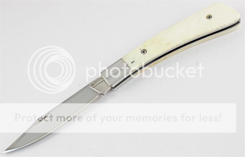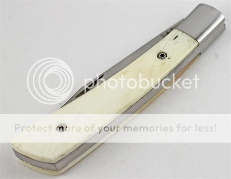 Whilst doing a little internet window shopping today, I came across this slip-joint folder made by Kizlyar Knives. It's something different, something new, and I am intrigued: a slippie with genuine white bone covers (3.9" closed) and a ti coated AUS-8 blade (3.2") for under $40. Here's a photo I borrowed from the internet: