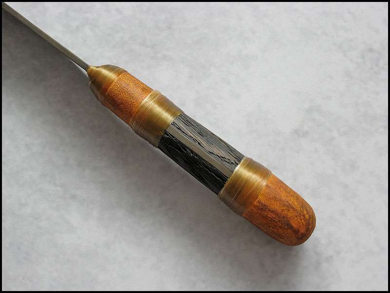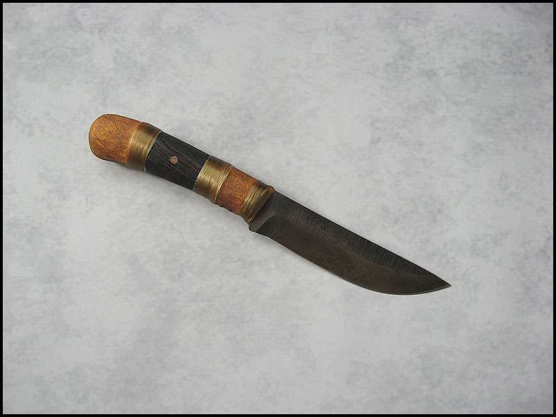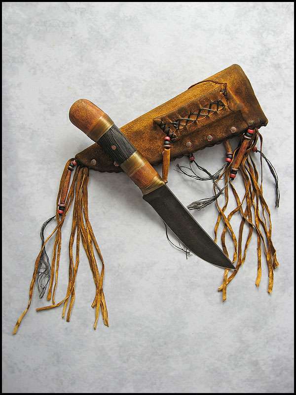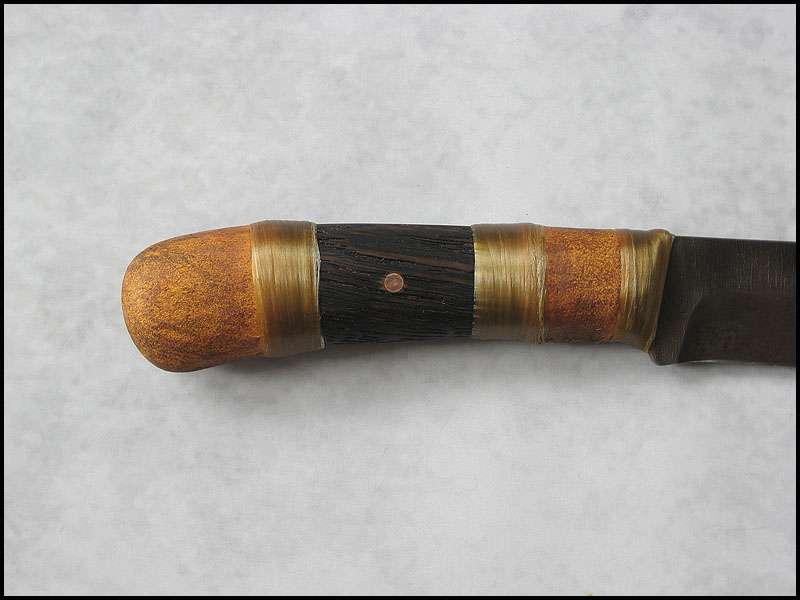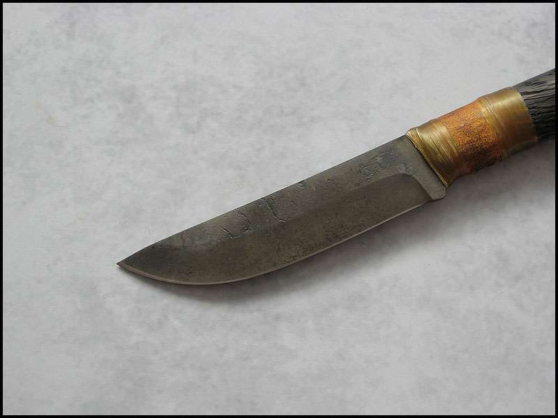 Bona The Art of Harmony Joined Apr 27, 2006 Messages 1,158 Apr 22, 2012 #1 Next one, also with wood steel - high carbon NC6 / 3.0 mm [0.118"] length - 241 mm [9.488"] blade - 124 mm [4.882"] handle - "old" oak, copper, buckskin, artificial sinew sheath - cowhide leather, buckskin, copper, glass, stag, artificial sinew