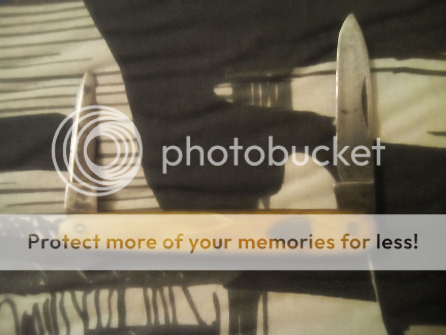 This one was labelled as an 'Old British Army Knife', which it obviously isn't. I assume the reason for this claim is the small arrow on the mark side scale, which is similar in appearance to the 'Broad Arrow'/'Crow's Foot' found on British army and navy clasp knives. I commonly see this mark forged on old tools, and sometimes knives, but there are of course, other reasons an arrow mark might have been stamped or carved here, other than an attempt at forgery. However, the letters, could be a crude attempt to imitate a 'WD' (War Department) stamp. Or they might be the initials 'd M'! The marks don't appear to have been made recently, quite the opposite.