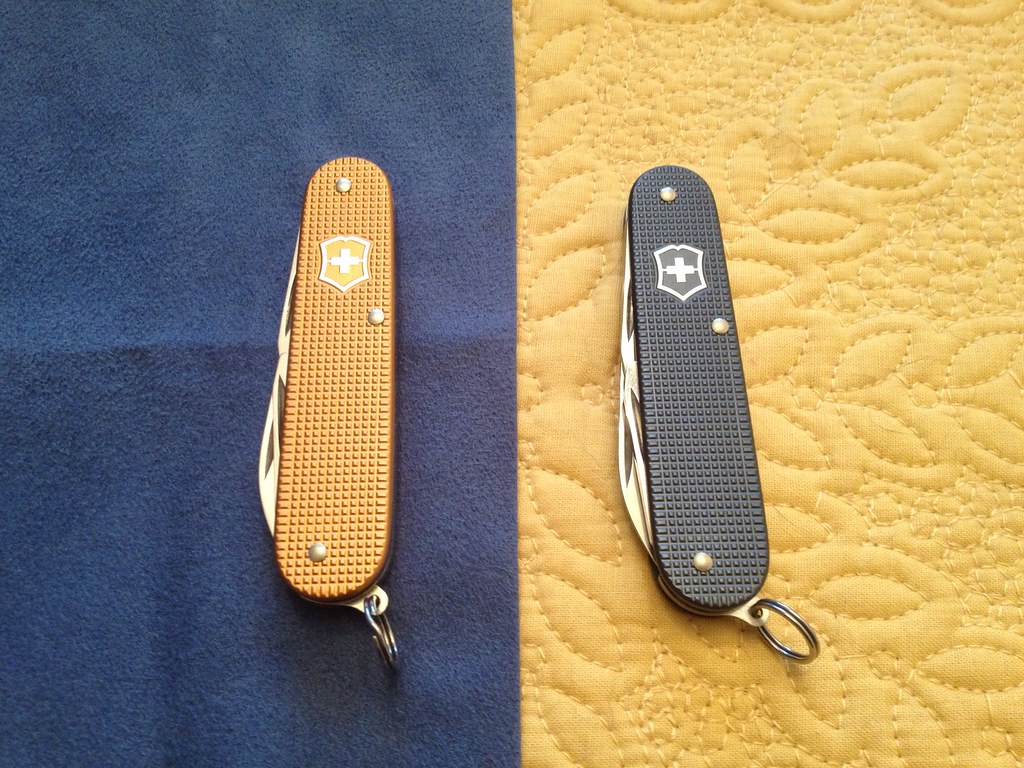Victorinox Cadet in Autumn Orange (L), Gunmetal (R) by Agent_Ohm, on Flickr