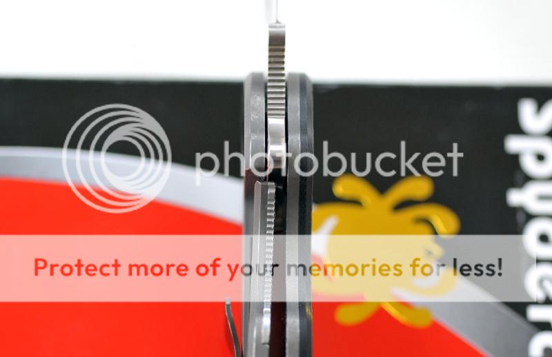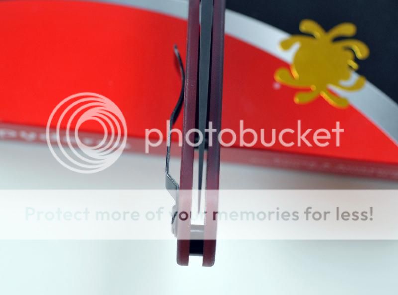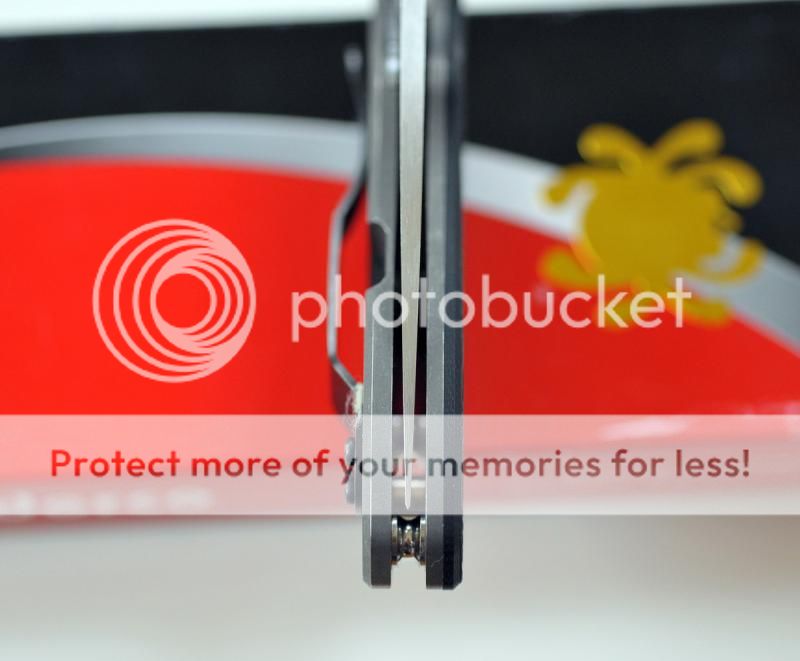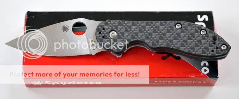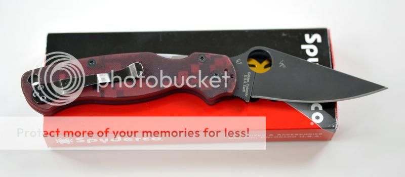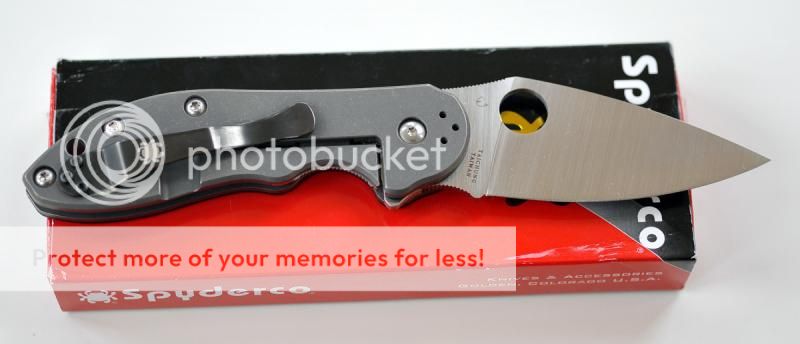 This one is as new with box and papers. Cut paper with it once and it went back in the box. Perfect lock up, perfect centering, a fantastic knife. Edge is factory and VERY sharp. There is a piece of lint from the cloth I wiped it down with under the pocket clip in the photo, not a scratch