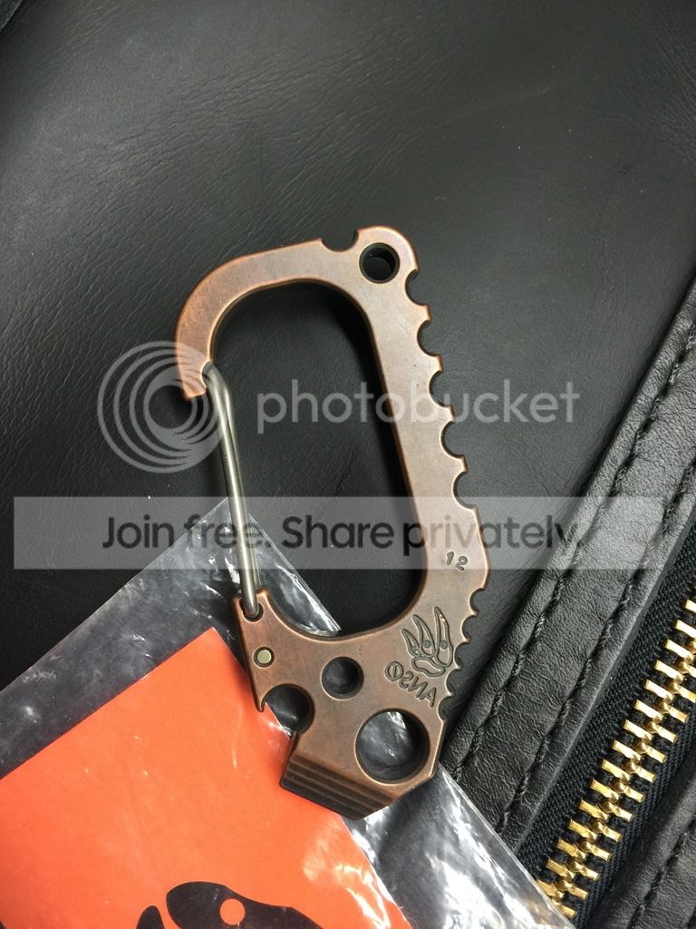 First up is an Anso Carabiner. This is the V 3.0 in copper. This is a "fat boy" version, so it is at a chunky 1/4" thick. No Anso Carabiner comes in thicker than this. Very limited item with "Reverso" logo. Also stamped #12. This item is brand new. Never been used.