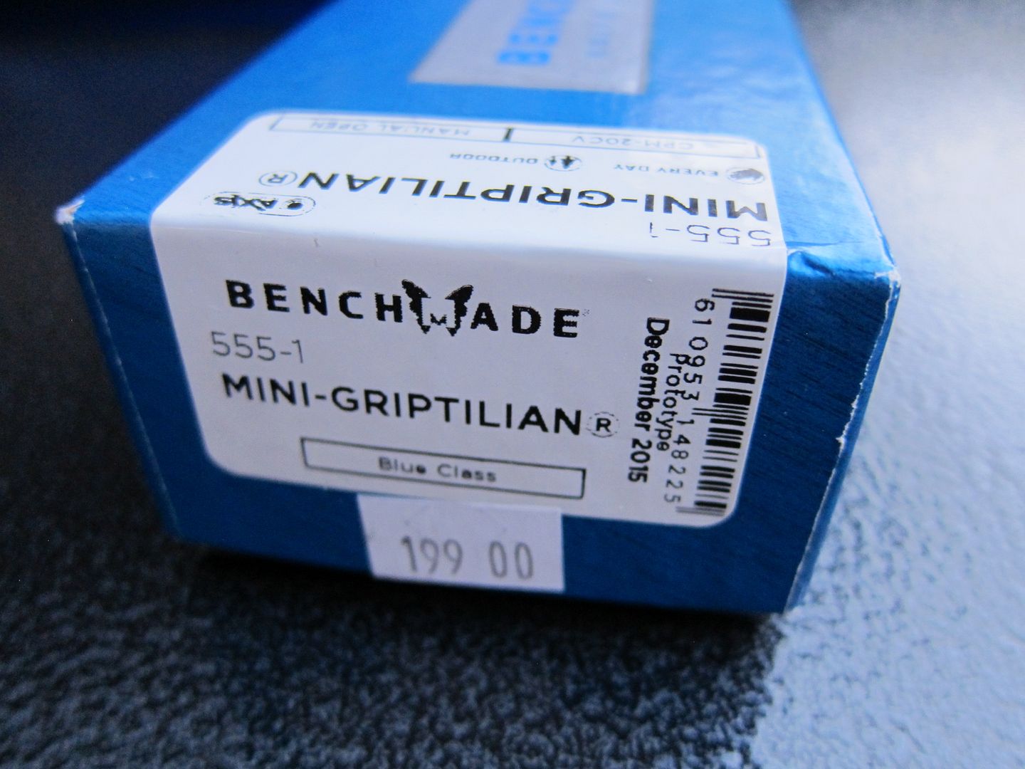Selling a few items that will never get used. 1. Benchmade Mini Griptilian 555-1 CPM-20CV Prototype - New in box. Never used. Never cut anything. Perfectly centered. SOLD shipped USPS Priority Mail Please no trades please.....
