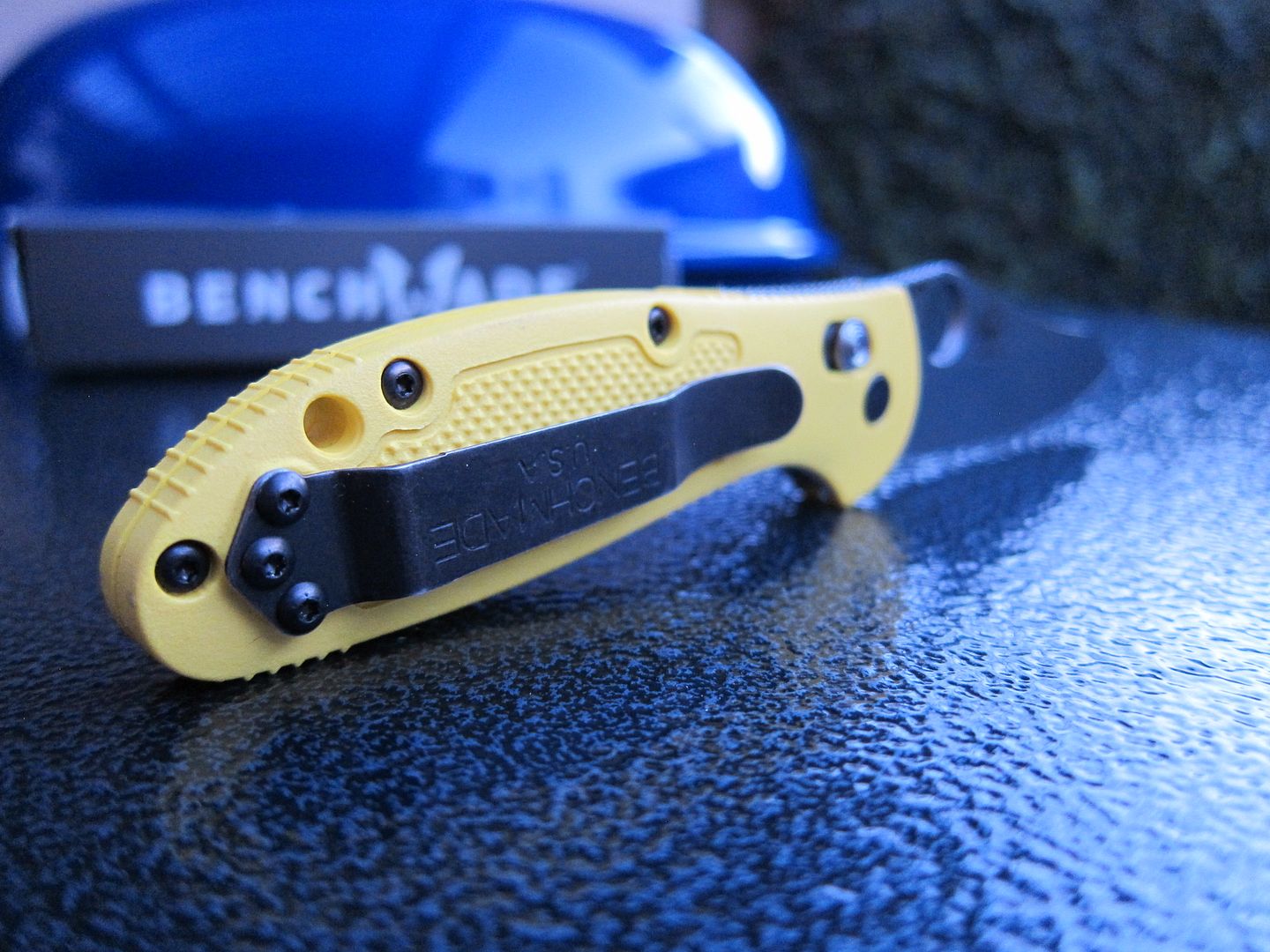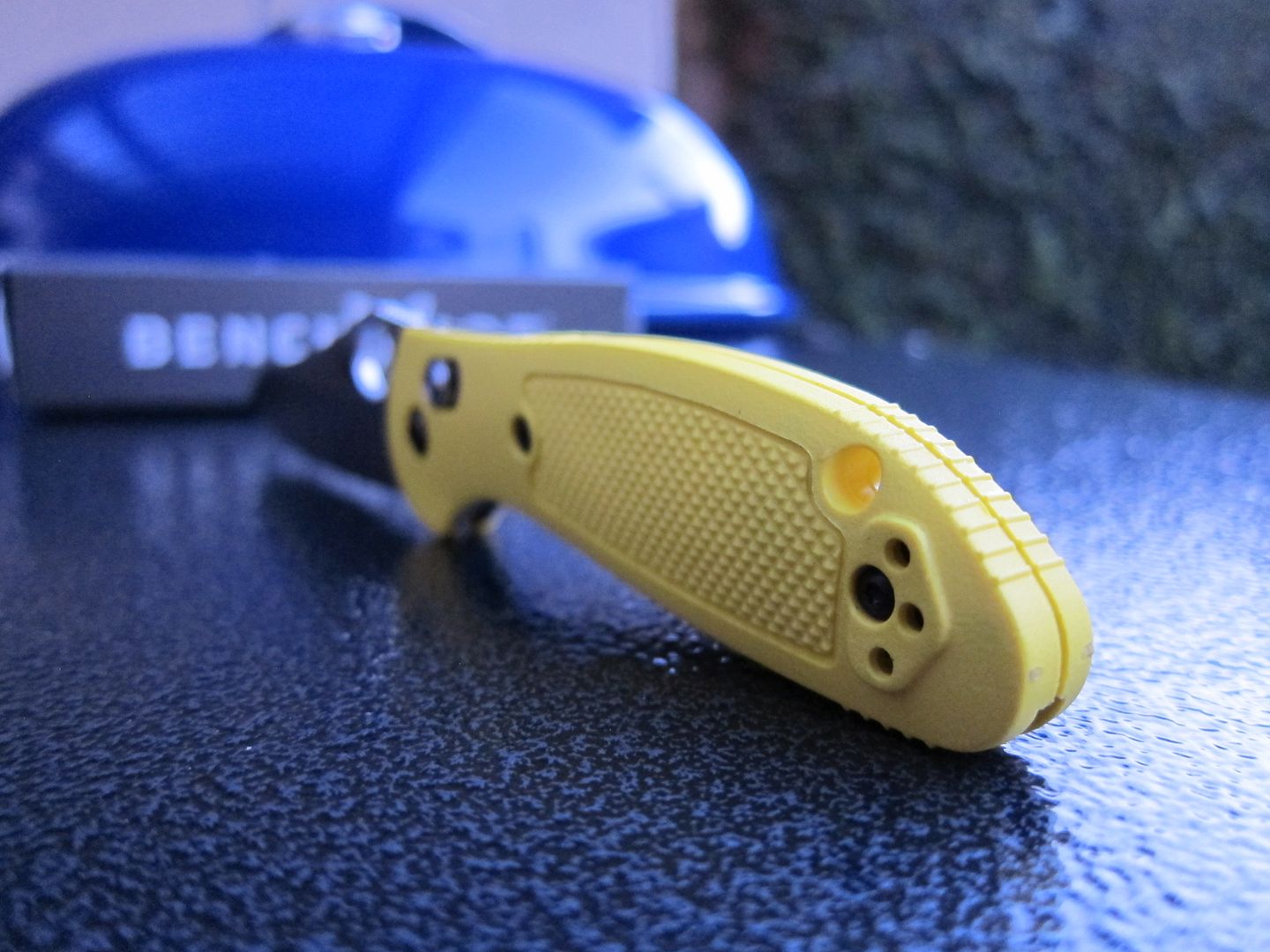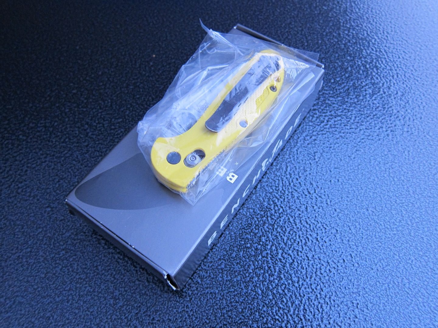 2. Benchmade Mini Griptilian 555-HG 154cm in Yellow - In like-new condition. It was never carried but used it to cut a few mail envelopes open to test the sharpness. The blade is slightly off centered but a small adjustment will fix it. Missing box but will be shipped in a Benchmade service box.