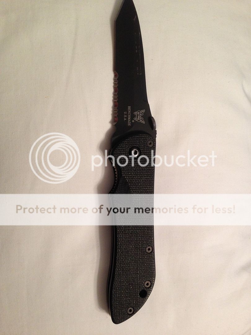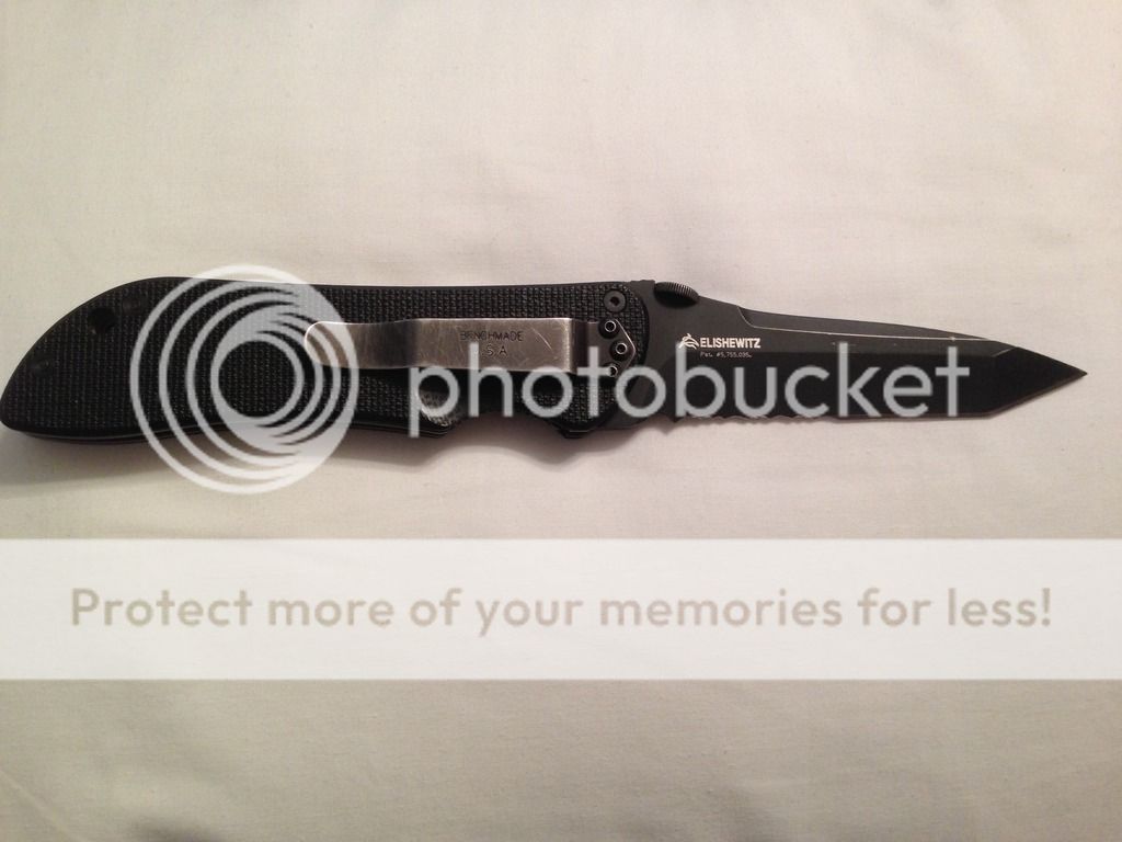 First up is a Benchmade 910 Stryker. This is a great knife that I have owned for so long I cannot remember when I bought it. It has a few marks on the DLC coating from where I had it in the clamp of an old Lansky sharpening system. This was many many years ago. The knife had about 75-80% lockup, was like that when I got it, and never moved. No blade play, nice and smooth. I sent it back to benchmade for the lifesharp service back in 2013. I didnt realize it was that long ago, and it has been sitting in the safe ever since. Its in really great shape and needs a good home. I have a benchamde box to go with it . Im asking SOLD shipped CONUS Paypal.