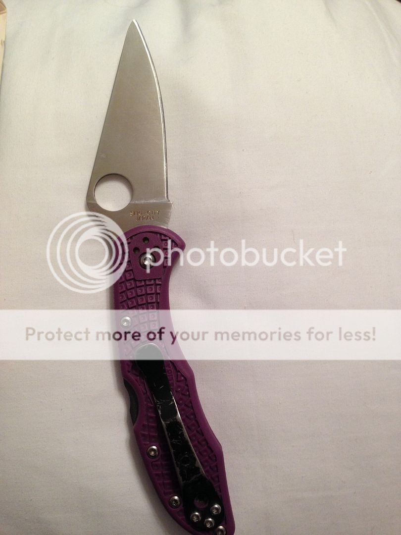 Next is my Spyderco Delica 4. This knife was used some and carried a lot. The pocket clip looks like it was in a gravel parking lot for the last month. I carried this blade a lot when I first got it, but ultimately moved on to other things. I thought I might have killed the tip with my sharpmaker a little, so I tried to clean it up as nest as I could. Cuts perfect and it very sharp. Im asking 40$ CONUS PayPal.