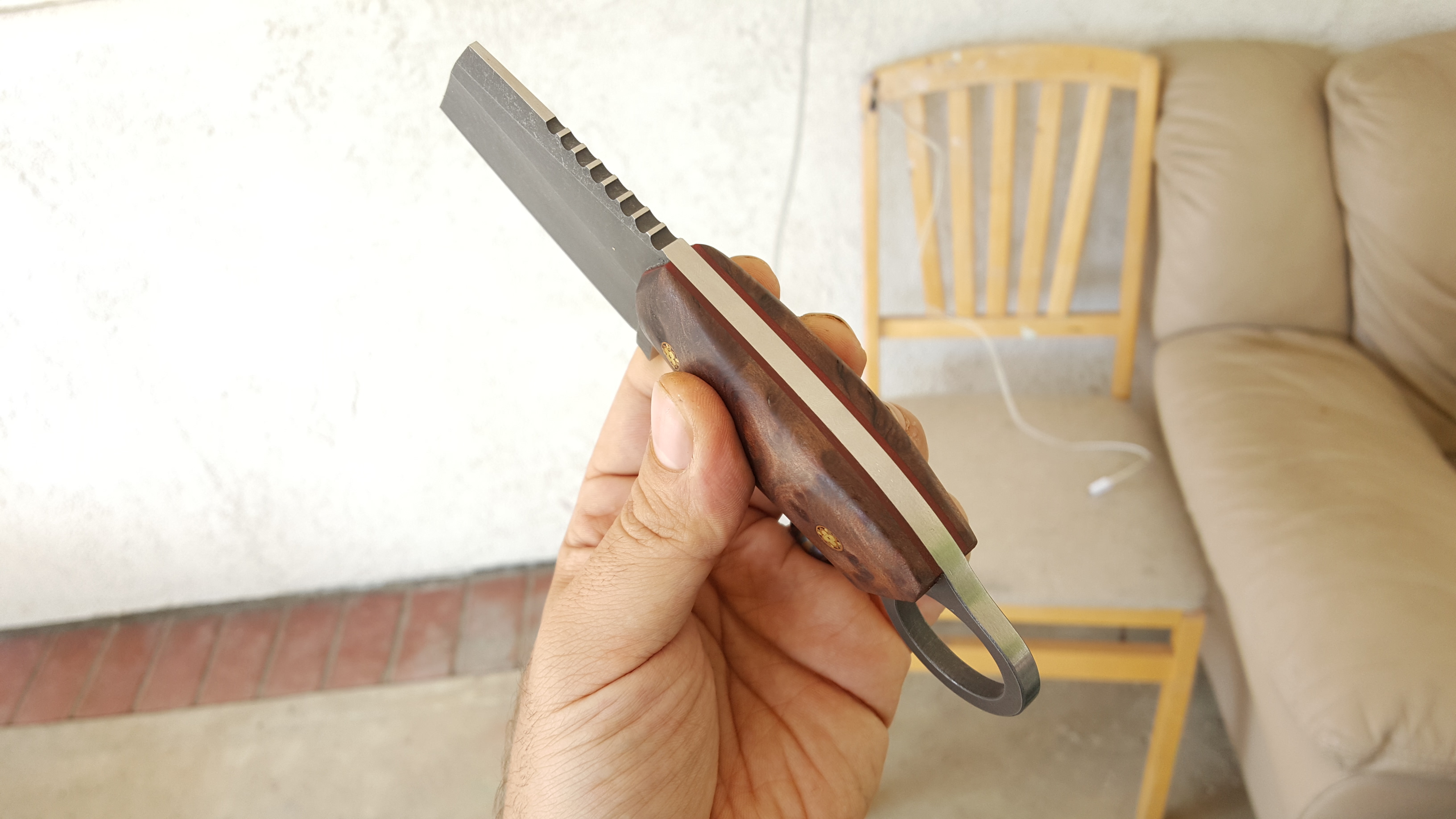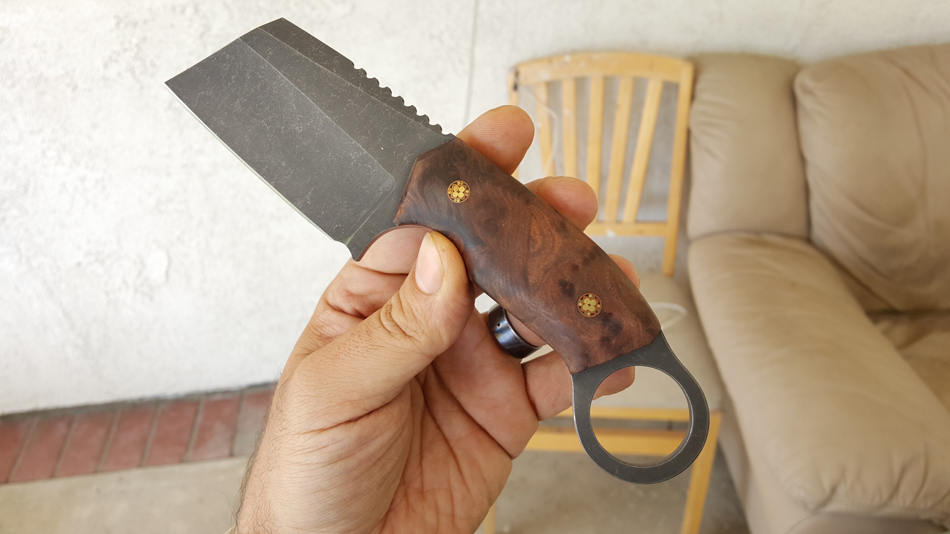 1) Berg Blades Cleaverito - s35vn w/ redwood burl scales over red G10 liners. This knife is in excellent condition and hasn't been used at all. Includes kydex. Asking $420 shipped & paypaled OBO -SOLD-