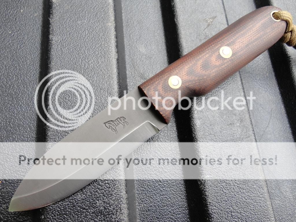 For sale is a beautiful Blind horse knives bushbaby with Scandi grind. I bought this about a year ago from 91bravo on the ESEE forum and have only used it once. These photos are borrowed from the previous owner but the only difference in condition is some very minor scratches on the blade from being used to make feather sticks. The previous owner stropped the edge to an EXTREMELY sharp edge and it is still just as sharp as when I bought it. It comes with the neck sheath that the previous owner wet formed to a perfect fit. He also forced a vinegar patina on the whole knife and then stropped it off of the Scandi grind. I hate to get rid of this one but I need the money for another purchase. I am asking $135 TYD.