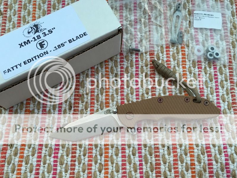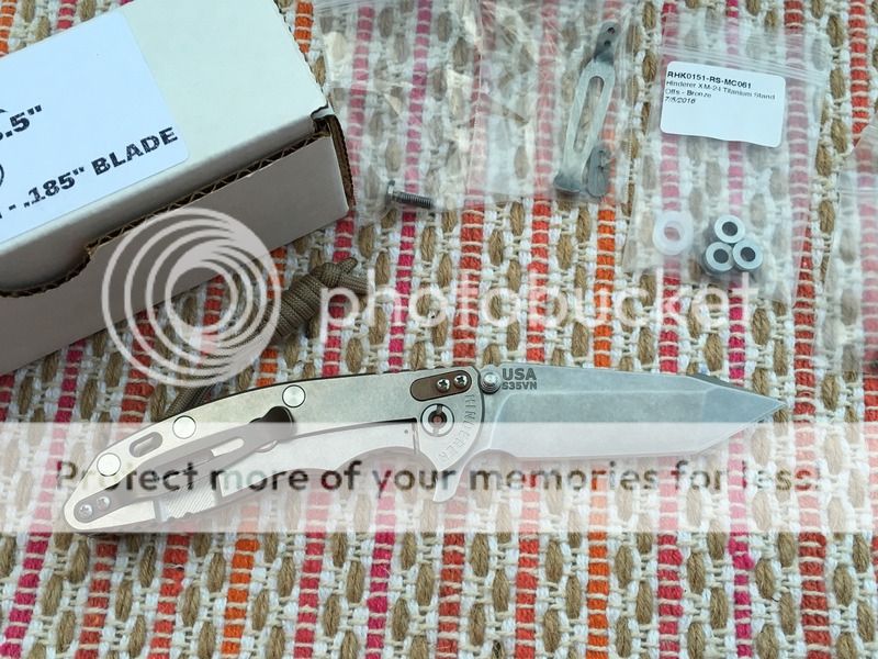 This knife is new but I have added a few upgrades. I added bronze hardware (stand offs, scale screws, pivot screw, clip, filler tab) and also swapped in some phosphor bronze washers. All original hardware (screws, standoffs, Teflon washers) are included.