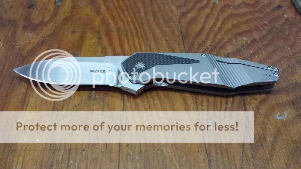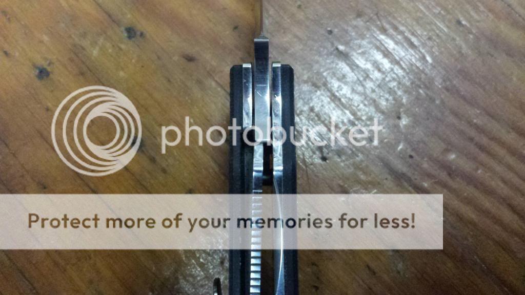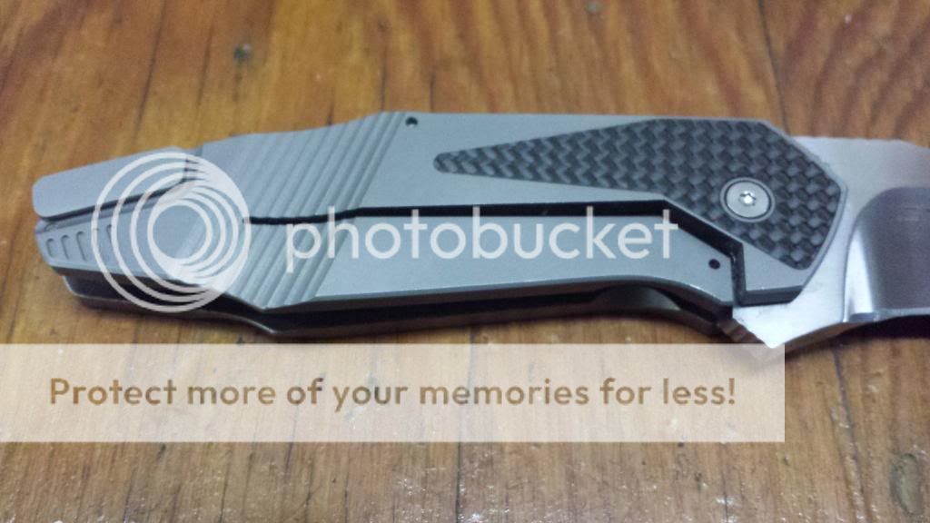 Rub/scratch marks on titanium, sticky lock, small scratch on lock side of blade.