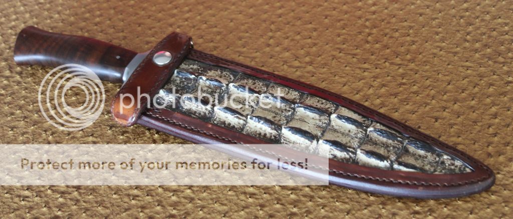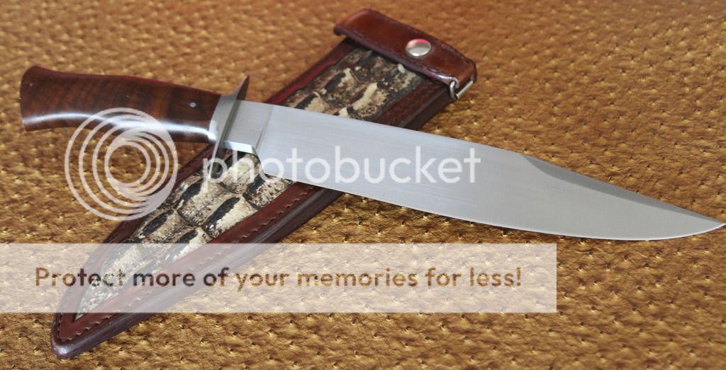 This is a Brett Gatlin user knife I have up for sale. Handle: Walnut Blade: 5160 BL: 11" OAL: 16" Custom Sheath from Kenny Rowe leather with gator inlay. Asking $700 obo shipping included. Ships to USA only.