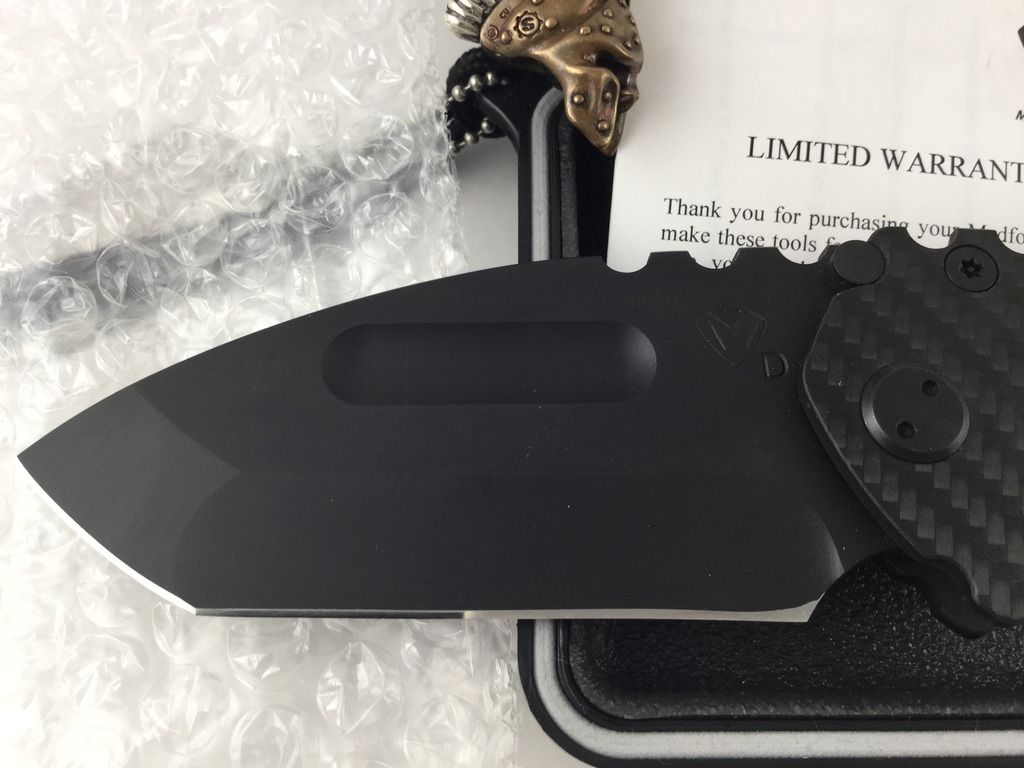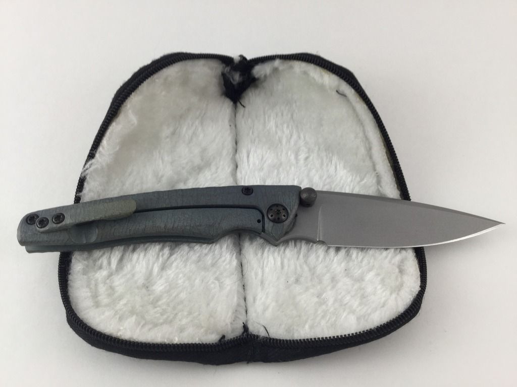 3. Brous T4: With carbon fiber scales, skeletanized titanium liners, dark acid stonewash finish, 4" blade and D2 blade steel. I had noted on another post that this knife's centering was off, but it was only a loose pivot and has since been fixed. In the updated photos and video you can see the centering is spot on. I am the first owner of this knife and it was purchased from the Brous authorized dealer ActionConcepts new for $440.00 and is now listed on the site currently for $380.00.