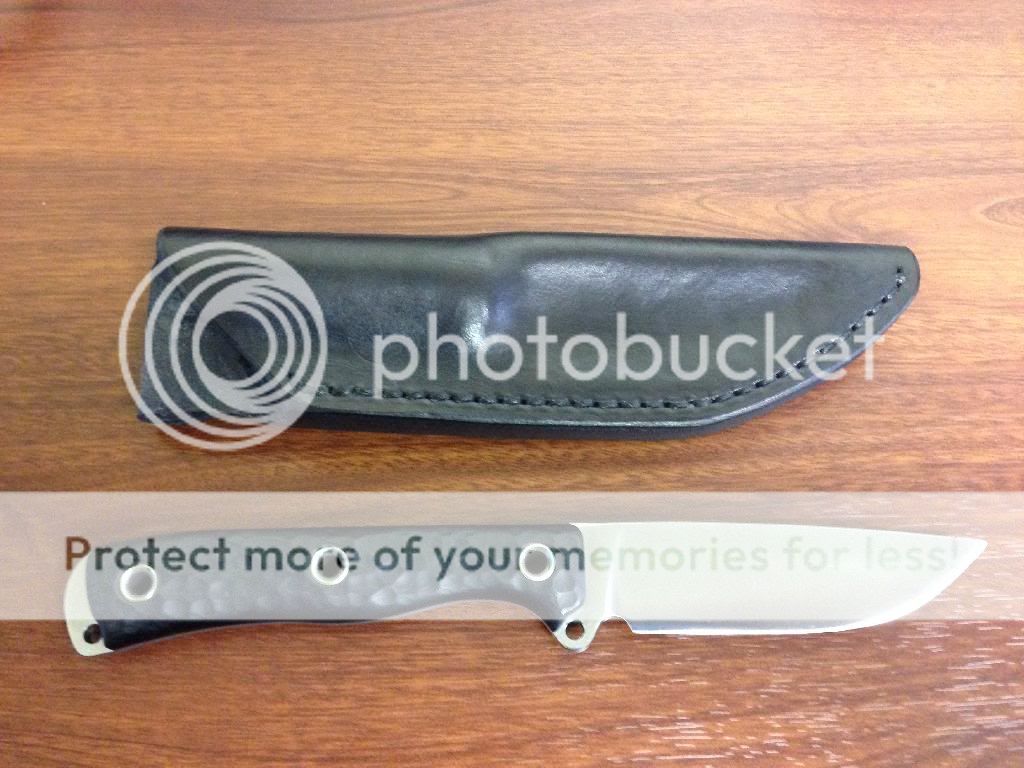 For sale is a like new Busse AMS with sterile blade and black paper micarta handles. Was ordered through the Cupid ganzaa. The knife has been carried a couple times but never used or sharpened. There is a small imperfection in one of the handle screws as shown in the photo. Comes with black leather skystorm belt sheath and original cardboard sheath. The sheath has been wet formed and fits the knife perfectly, it does have some minor marks from being carried and stored. I am asking $310 TYD via PayPal gift or add 3%. Not interested in trades at this time.