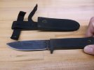 Cold Steel Master Hunter Carbon V #2 - A beater of a knife that I got off of a "buddy" for the purpose of re-handling it as a project. Handle is OK, but the finger guard portion is shot, blade is solid (and is the thickest Master Hunter Blade I've ever seen). Has some surface rust, but should clean up well. Comes with period correct used cordura sheath. $ 75 Shipped CONUS
