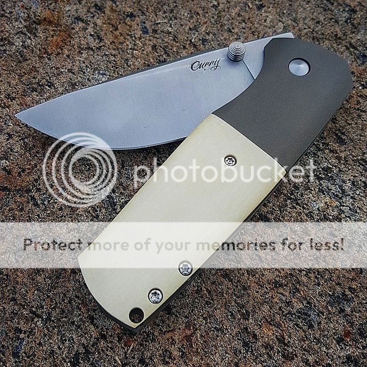 Selling my dress curry XL with ivory westinghouse scales behind an intergral bolster. Knife is in perfect condition, has not been carried or cut with since received at blade 2015 from the maker. Knife is rock solid, with a great action and no lock movement. 3.4 inch blade of 154cm that has been stonewashed features the Curry #FAF logo, frame is bead blast and lightly bronzed. Asking $2400 OBRO shipped. Paypal gift or 3% to cover fees. Trades considered for Rare Mayo knives or Peter Carey's work.