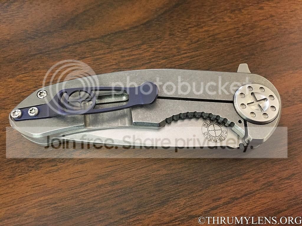 Up for sale is this Curtiss F3 3.5" with full Ti scales and custom blue anodized pocket clip by Dave himself.
