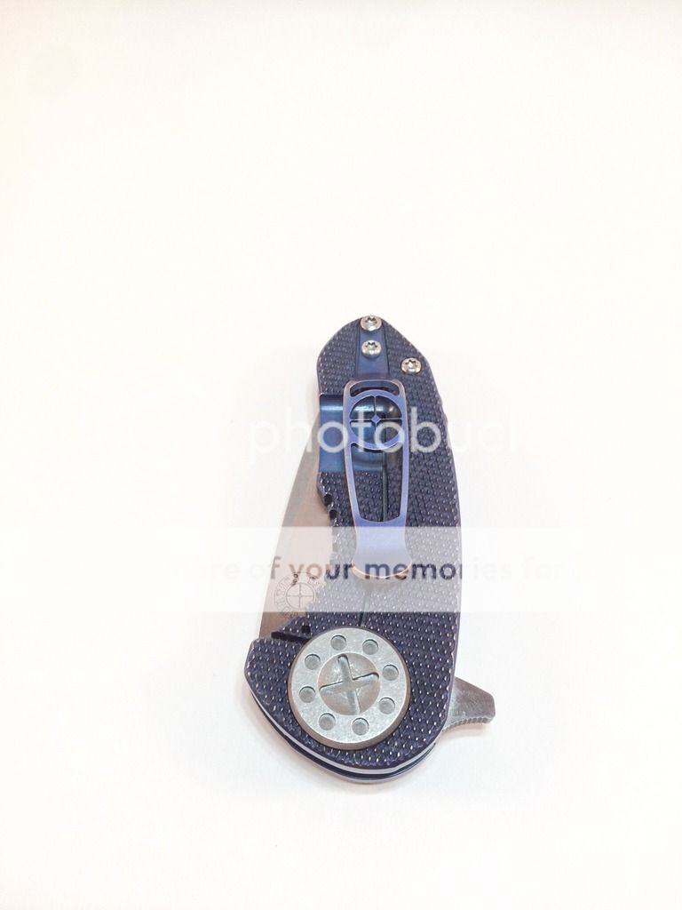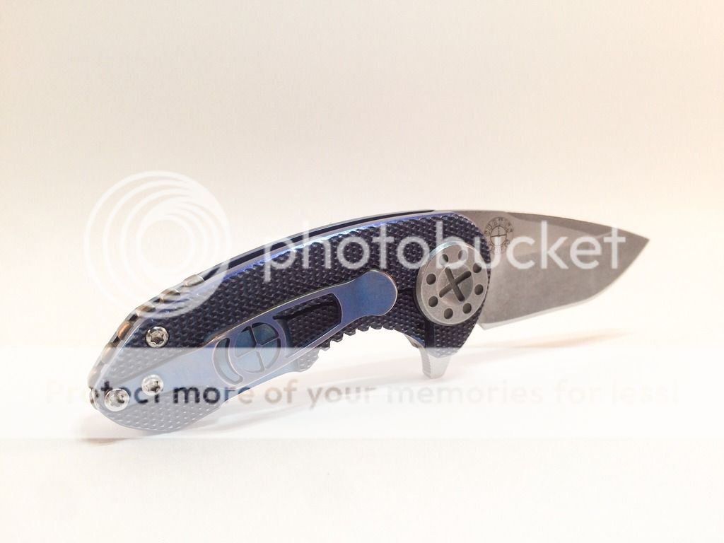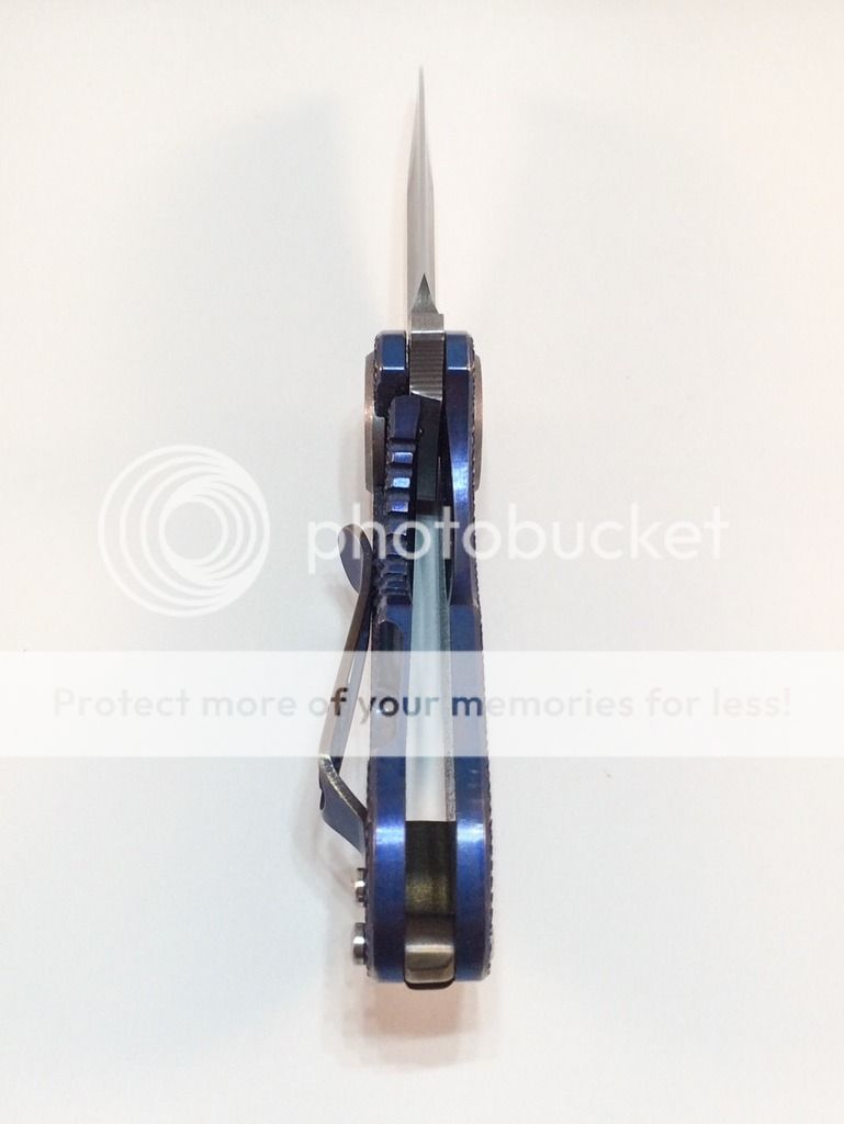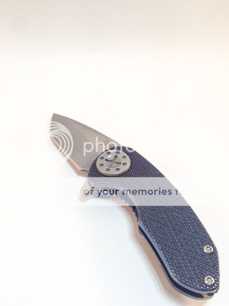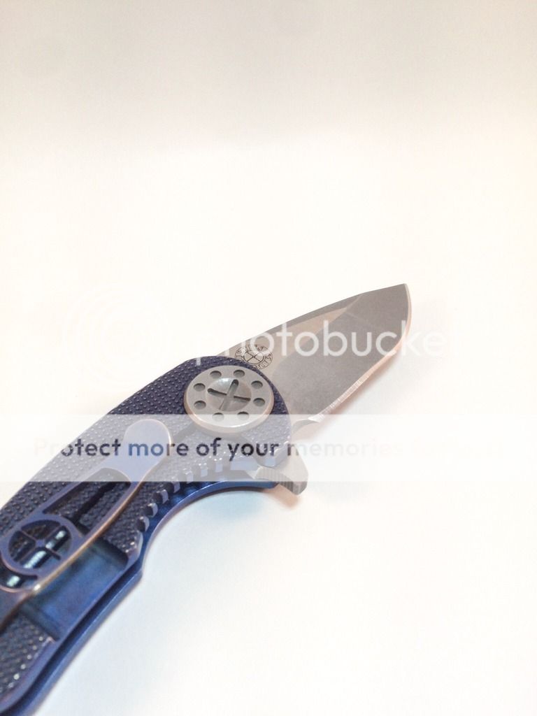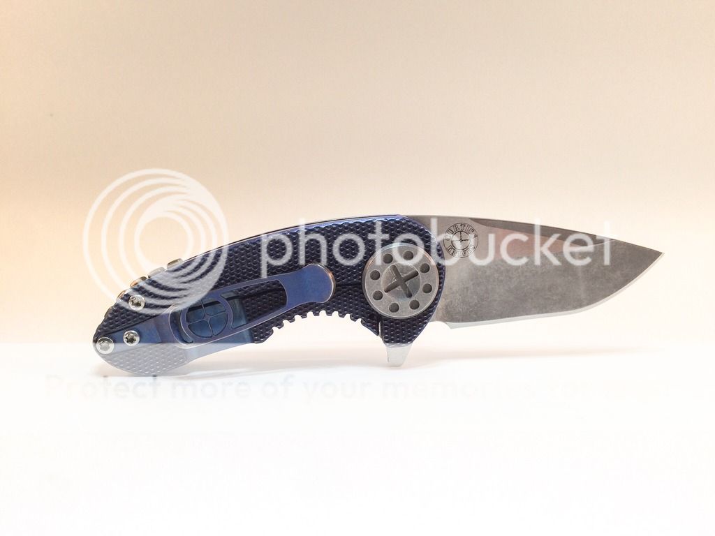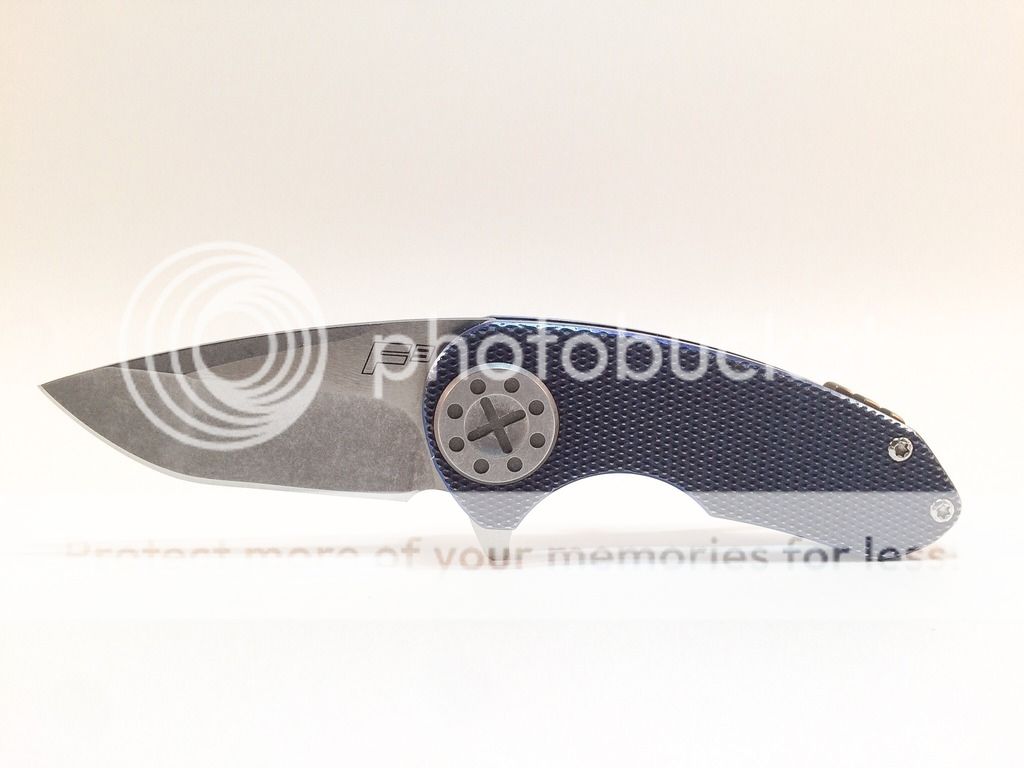 Selling of my Curtiss F3 Compact. Purchased new from WSS Firearms (pic is still on website) in July. It is anodized a purplish blue (depending on the light) with bronze anodized backspacer. There is a small mark next to the backspaced, dealer stated that is how it arrived from the maker. Not sure if it from machining or what. I have carried it a handful of times, opened a couple letters and packages, it has seen very little use. The edge is still factory and super sharp. Flips open like a rocket, nice solid lock-up, no blade play. The scales are the diamond pattern, N690 steel. Overall it is just a nice little knife. I'm selling it to chase after something else. Asking $425 shipped. Paypal only, ships USPS priority, CONUS only, not looking for trades. Thank you for your interest!