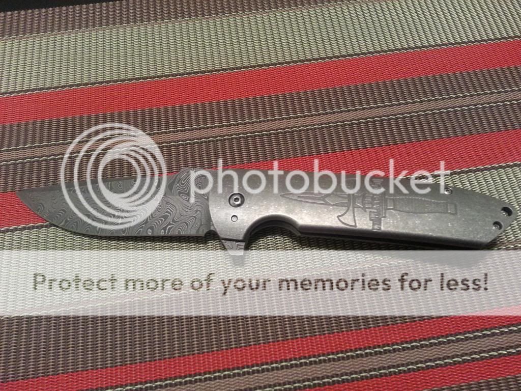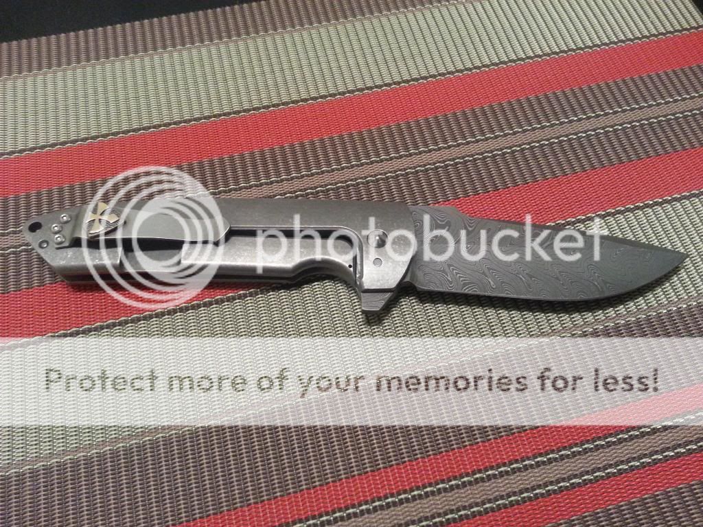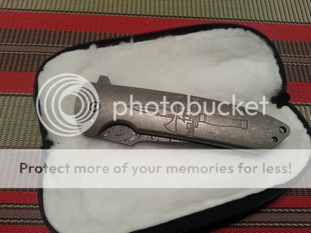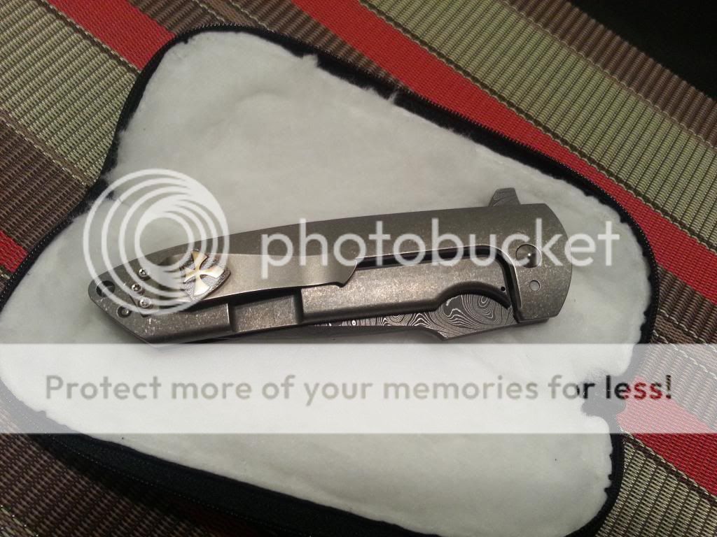 This amazing knife was one of my grail knives I always wanted to buy, but its just too nice and alittle to big for me to carry. Its in mint condition, flips open nice and smooth, lock up is solid no blade play whatsoever, and centered perfectly! It has a 4inch Chad Nichols damascus blade, full titanium handles with dager engraving. Has a very nice crusader pocket clip. This knife is perfect! The lockbar appears to be late lock up but its around 50% and im told that is normal for Les' s customs. The lockbar is carbidized and like I said lockup is solid! Will come with knife and padded case only.