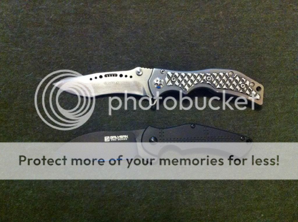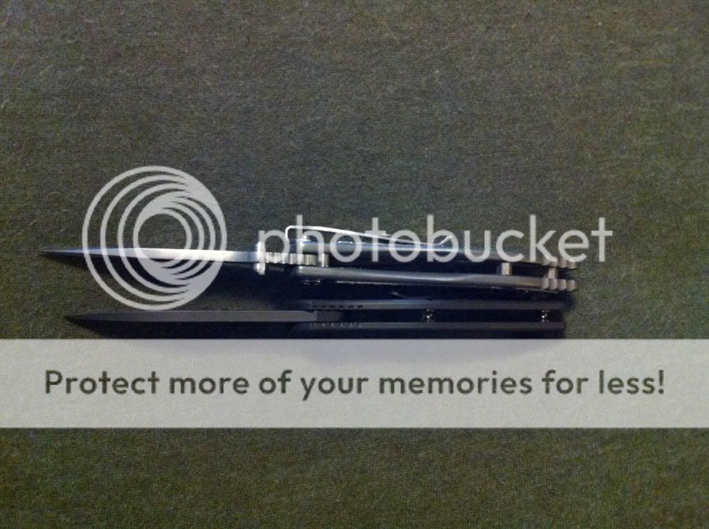 Blade steel: CPM154CM (60-61 RC) 0.150” thick. Black DLK coated blade and Ti Handles. IKBS. 7” OAL, 4” Closed and 3” Blade.