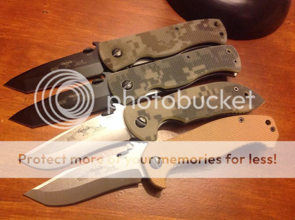 1. Jungle Digi Camo CQC-7 - New, in box, unused. I'm the original owner, never carried or used it. Comes with everything. Very smooth opening/closing factory Emerson (no grit or stickyness).