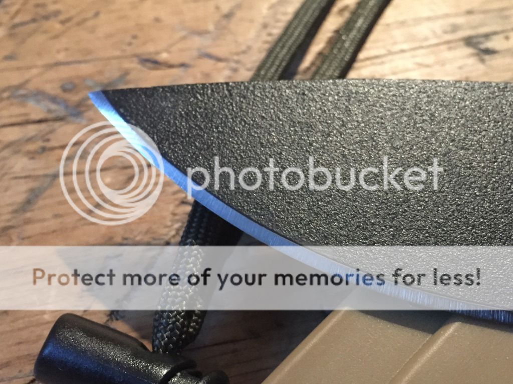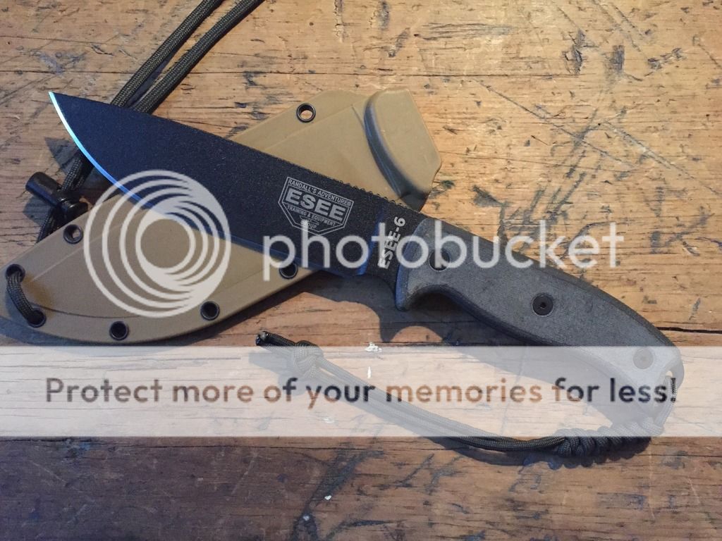 ESEE 6 with brown sheath, used but in good condition. There are a few very small chips in the blade near the tip, and the tip is a bit dull. Nothing major and could easily be fixed with a light sharpening, but in usable condition as is. There are some small patina marks in the edge and a few spots where there was a tiny bit of surface rust in the logo. There are some normal marks in the coating from use. All minor issues consistent with use... $OLD shipped