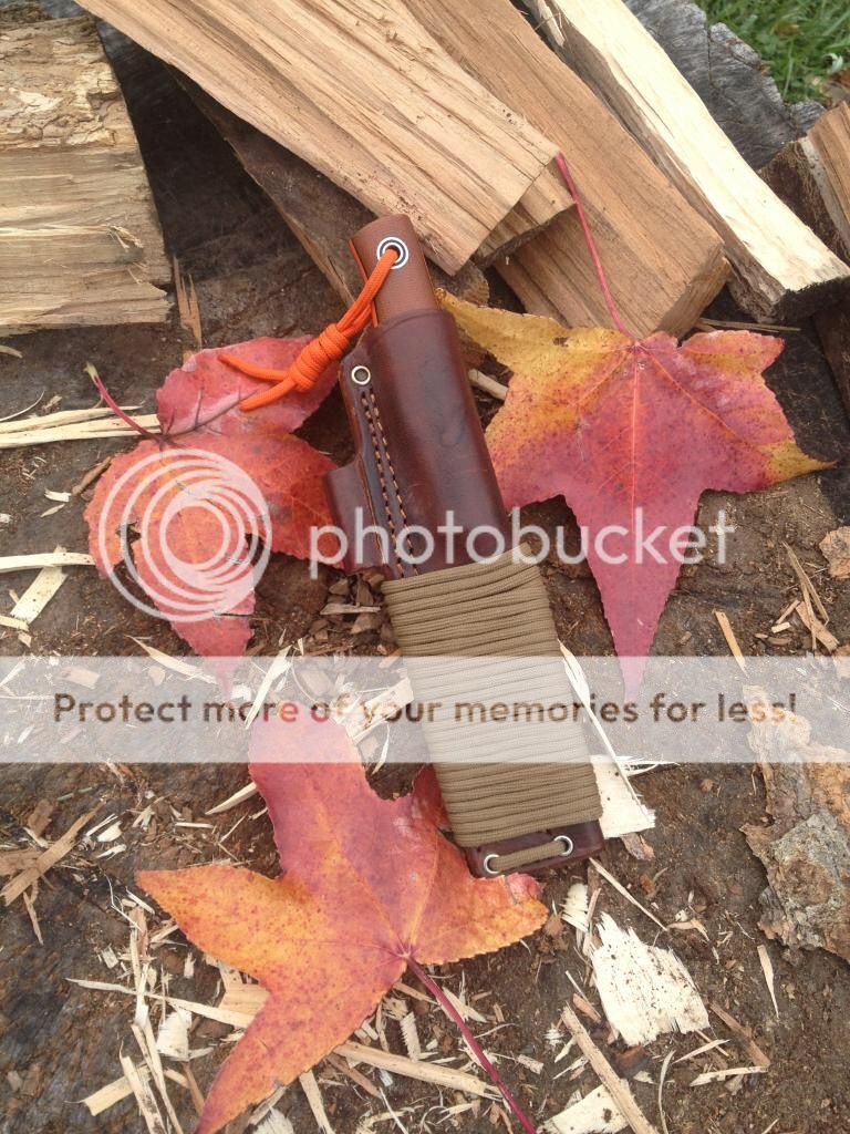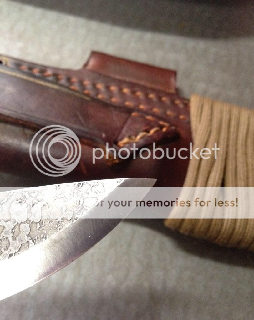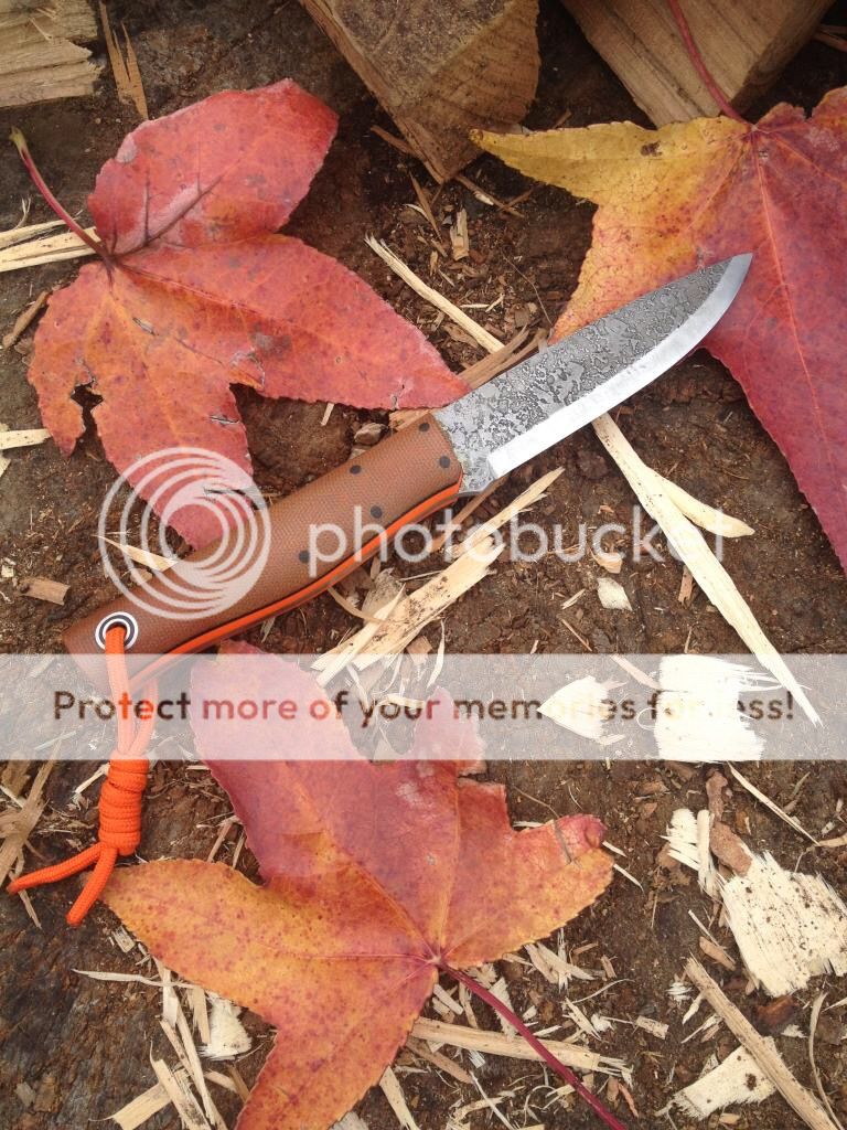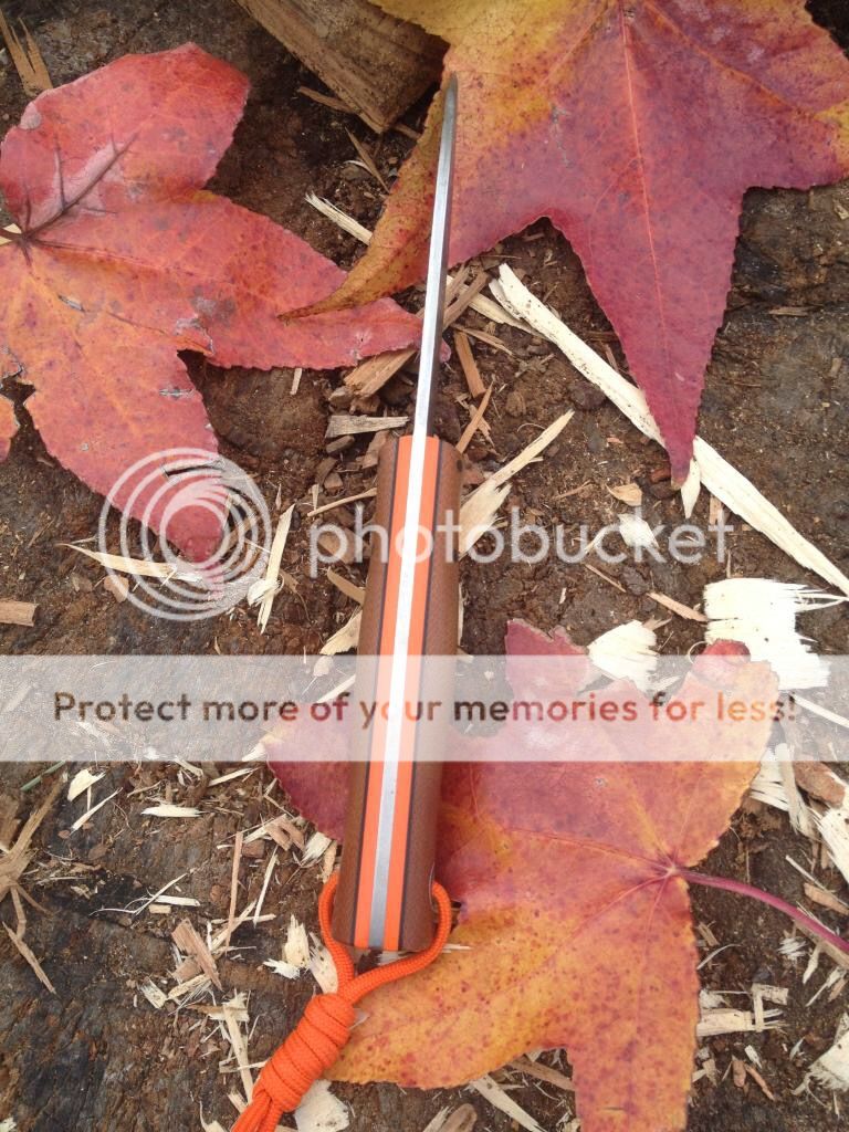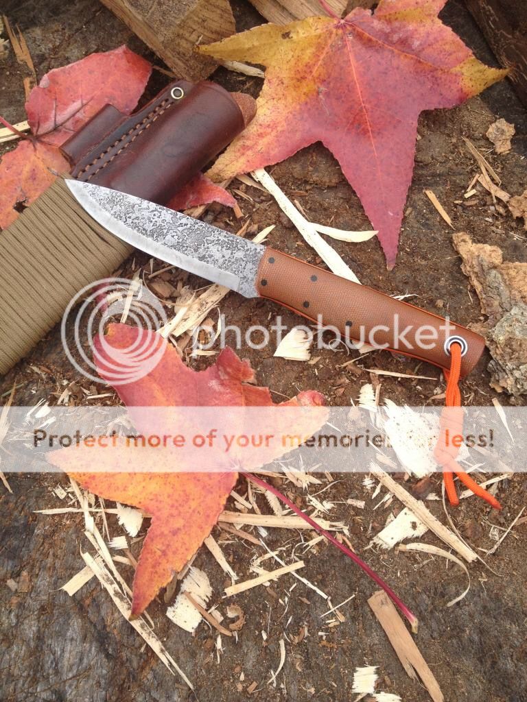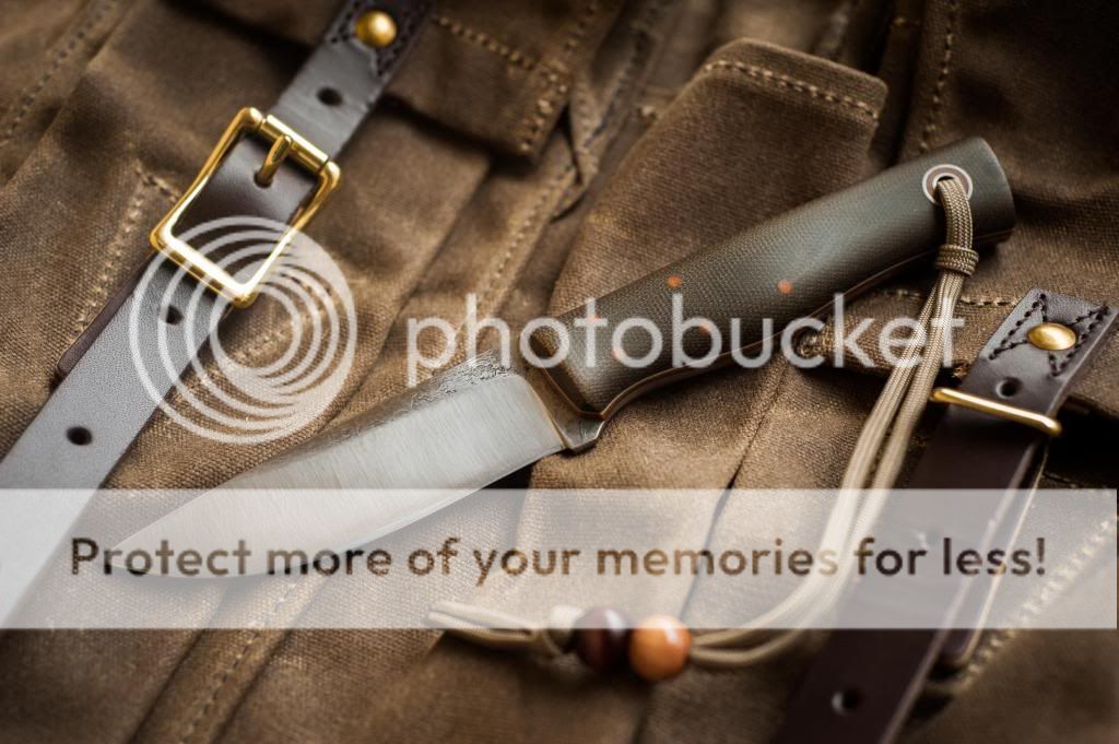 First up is a Fiddleback Terrasaur scandi with spalted blade, natural canvas micarta handles, and orange g10 liners. The knife has been used and has some scractches on the blade and other general wear from normal use. The previous owner ground the spine of the blade to better strike a firesteel, so the Fiddleback stamp is no longer there. I believe it can be sent back to Andy for a spa treatment and re-stamped, but I'm not positive. There is also a very small chip near the tip of the blade as shown in the photos. Also, the previous owner sanded the micarta handles a bit and it feels amazing in hand. It includes a leather sheath that has been wet formed to fit perfect. Asking $265 TYD.