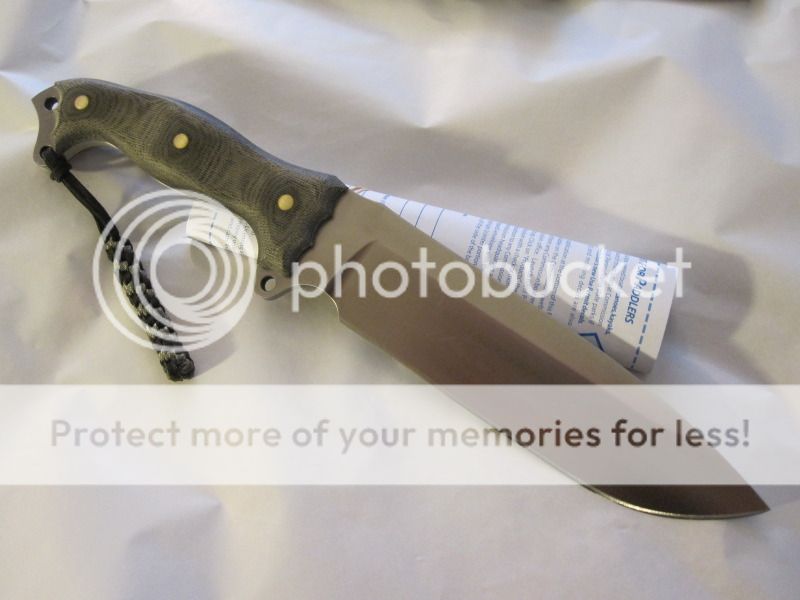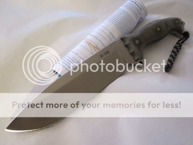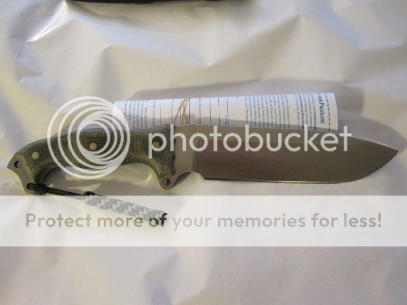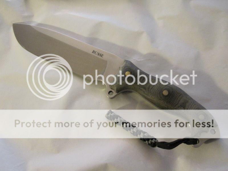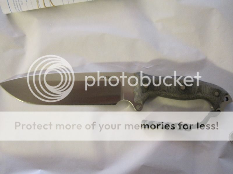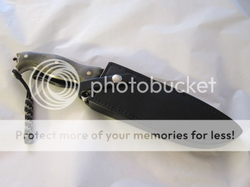 I have to let this Beauty go that I picked up at the Easton Show a few years back due to some heavy Infi purchases! This is a FSH Heavy Heart that is measured at approximately .270 thick at the spine. It has a satin finish with hand shaped smoothe bolt black Micarta handles.These smoothe bolts don't come up too often! It has never been used or sharpened and is absolutely gorgeous other than an ever so slight hairline scratch on the left front spine that will only show at an angle in a light. I can't get it to show in any pics. I believe this is from being sheathed a couple times in its custom Chuddybear sheath. It comes with a custom Chuddybear RH sheath that has never been carried.