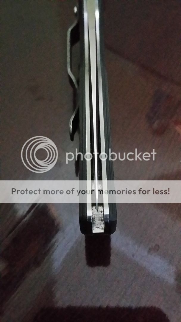 Edge is factory. Solid lock up and close to centered blade. Only