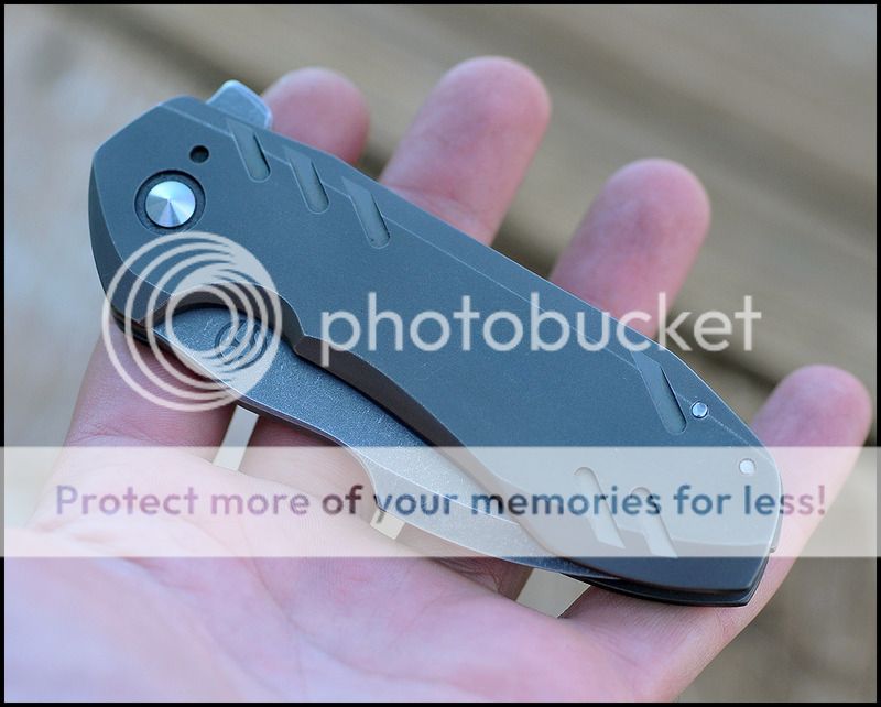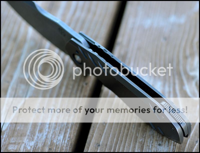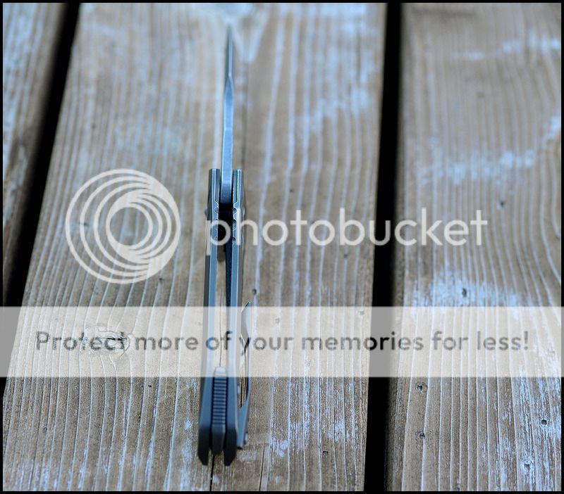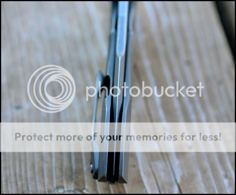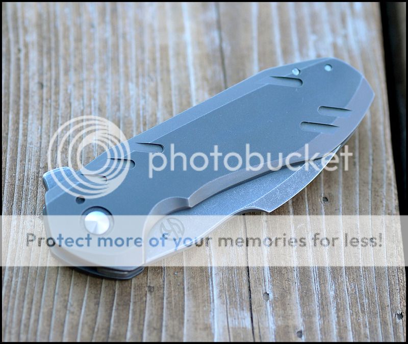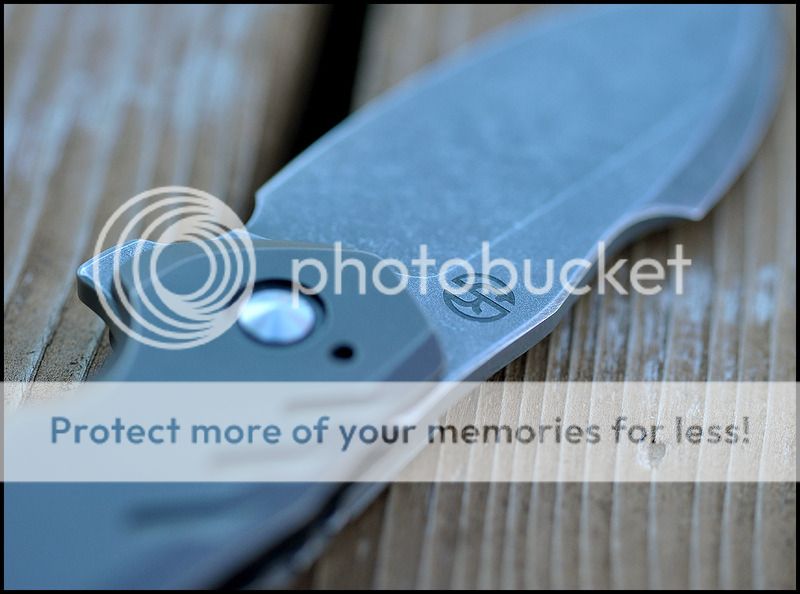 Blade is 3.5 inches long and the blade steel is XHP. The detent is very crisp and the action is VERY smooth. The blade falls shut under it's own weight when closing. Lockup is about 45%. Blade leans a TINY bit towards the lock side but nowhere near touching the scale. As far as I can tell by his Instagram page this was the first knife that Geoff put the larger logo on before switching to his current geared logo. I can't say enough about the detent on this knife, it is absolutely perfect and the sounds it makes when opening and closing is fantastic.