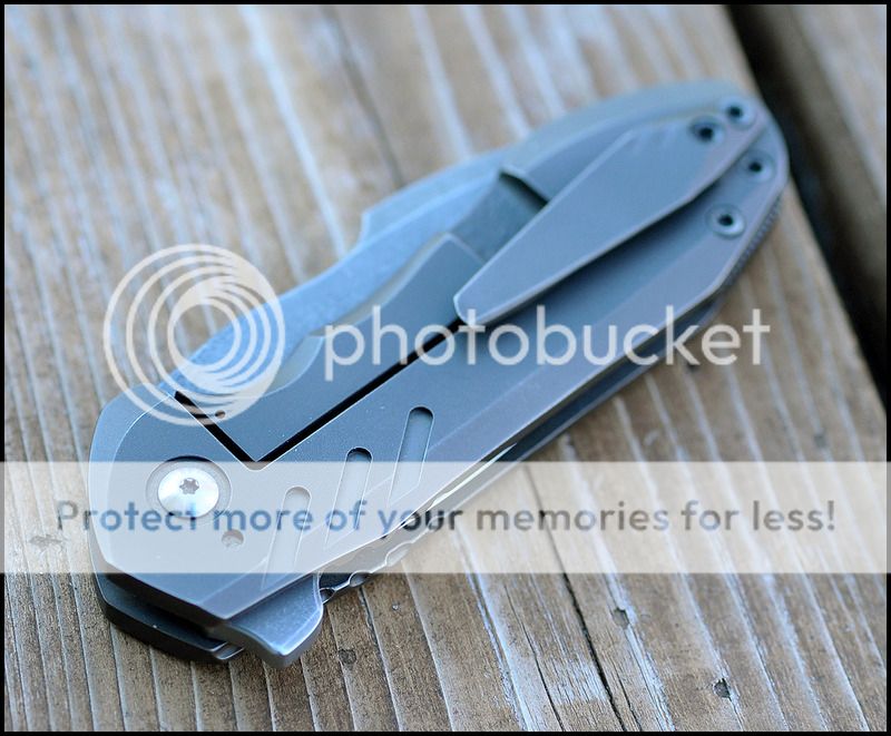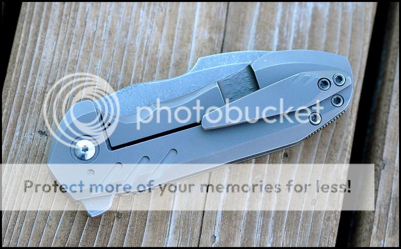 The grooves that are milled into the scales and clip on this knife were machined by me, not by Geoff. This knife was completely plain with no real decoration and I felt it would look better with some additional machining. I am a watchMAKER by trade and you would not be able to tell by looking that this extra machining was not done by Geoff. For more examples of my work please visit www.keatonmyrick.com. The milling around the pivot was done by Geoff.