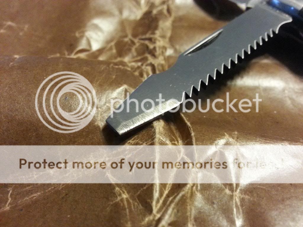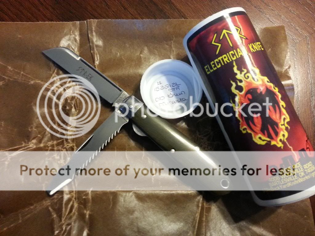 I was told by STR that his original design to GEC was to have the end of the saw fit electrical outlet screws and a swedge at the bottom to assist in punching thru drywall. GEC was only able to add the screwdriver taper on the spear model, but they did not make the swedge. The sheepfoot knife shipped to STR before this omission was caught. Steve ground both the screwdriver taper and swedge as per his design. I included a close up pic of it below. Since it was modified by STR, I still believe it is new in tube.