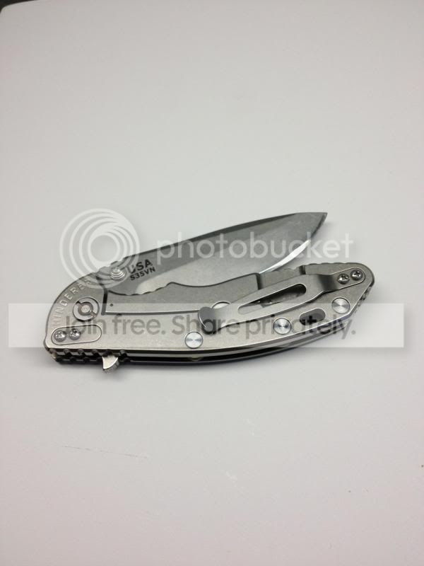 Selling my user XM-18 gen4, 3.5" Spanto Flipper in S35VN. Knife has been carried & used. Has some scratches on the blade, but the stonewash hides them well. Ti lockside has one minor scratch as well, nothing major at all. USA logo has some of the bronze color coming off it (see pic). Blade has been sharpened on the Wicked Edge by me and re-profiled to 37* inclusive.